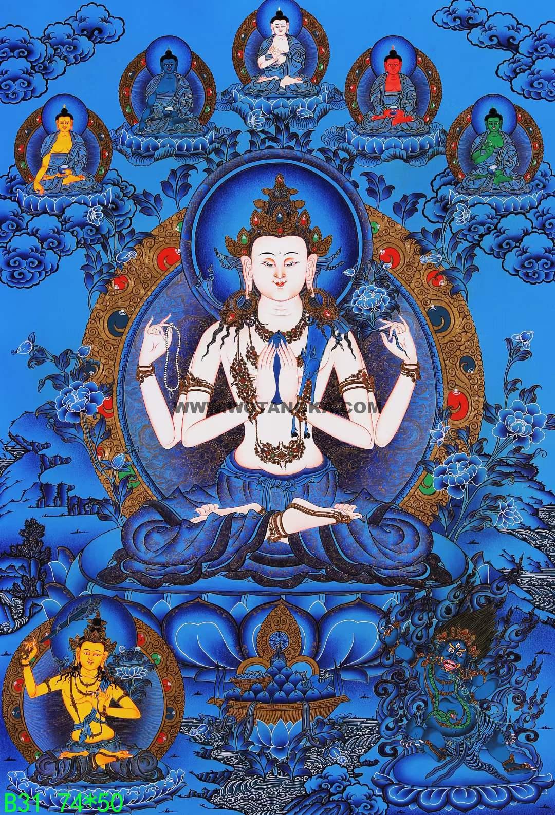 唐卡分类:四臂观音·三怙主