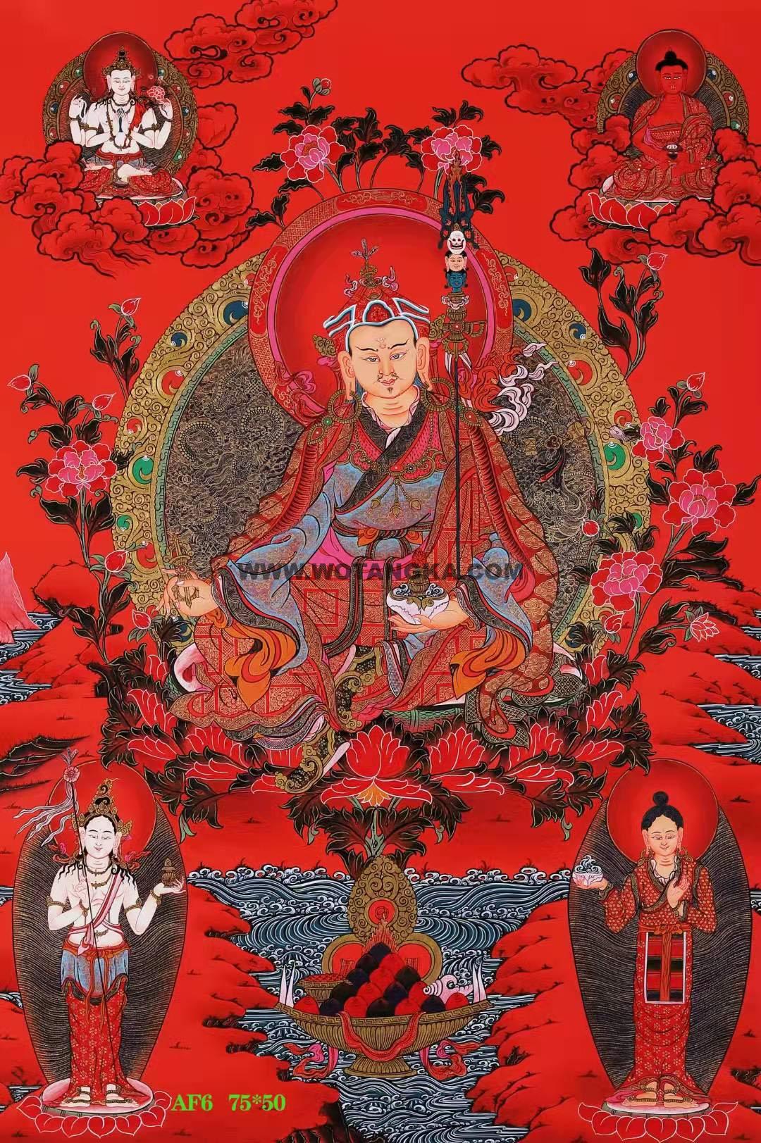 尼泊尔高端手绘红唐【莲花生大士】唐卡手绘布本。采用真金描线,天然矿石颜料着色晕染,画工细腻,开脸殊胜,是难得一见的好唐卡作品。