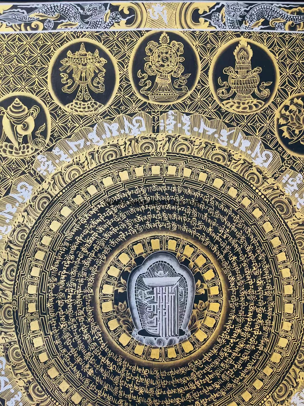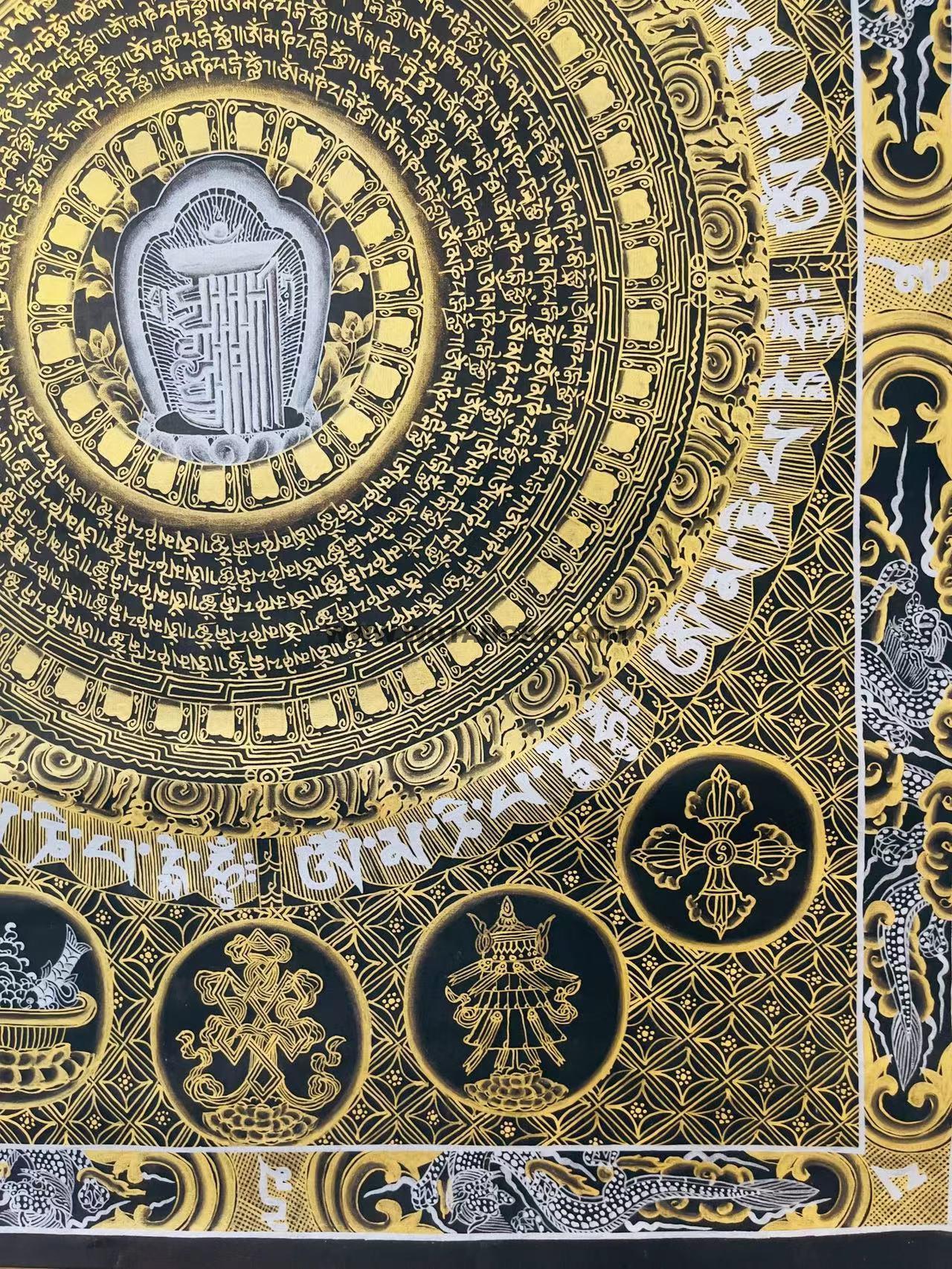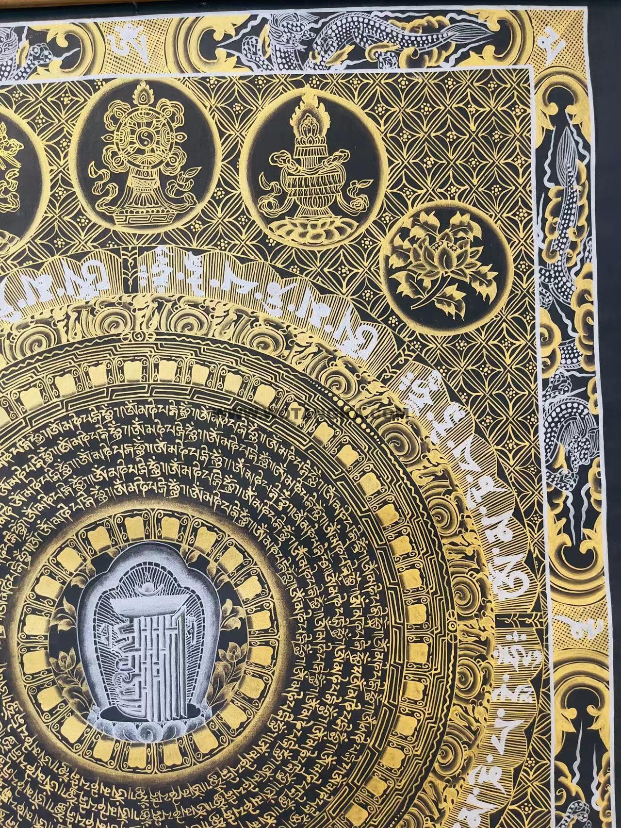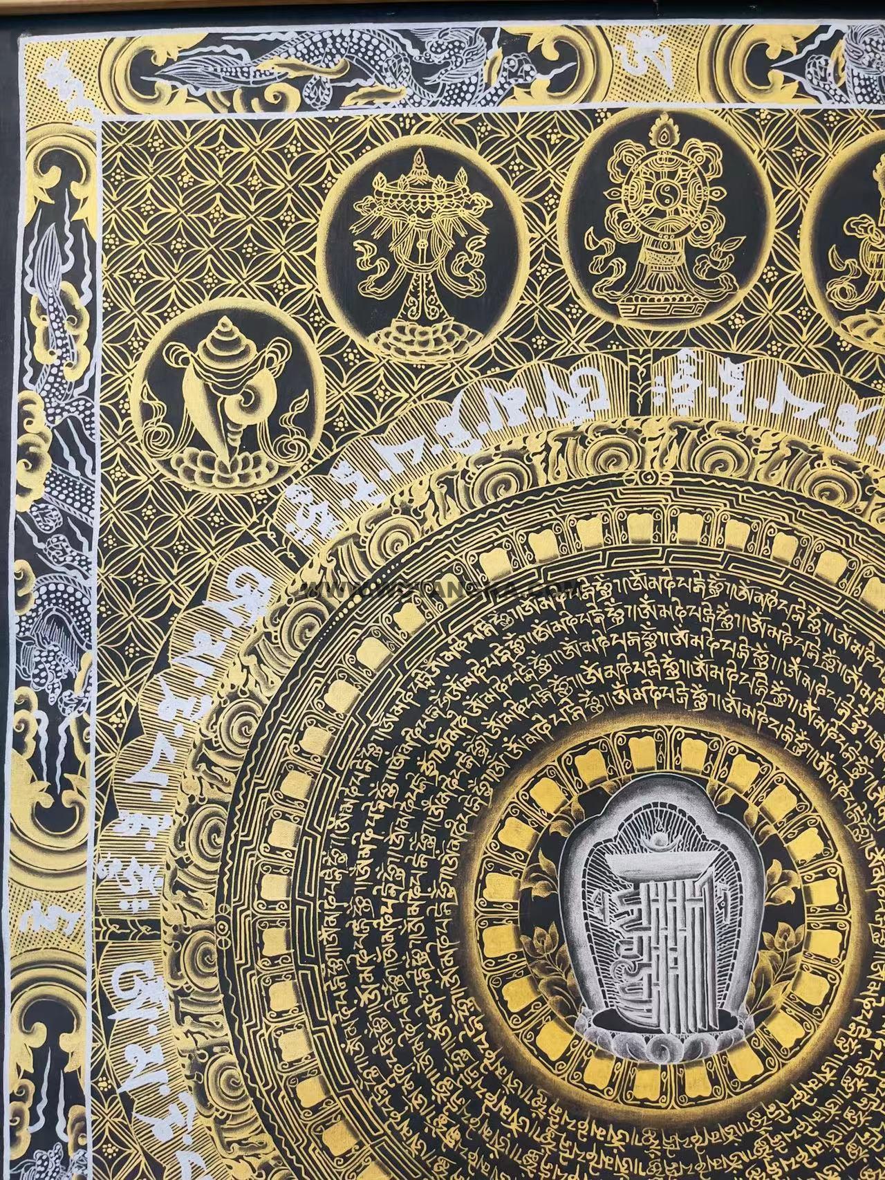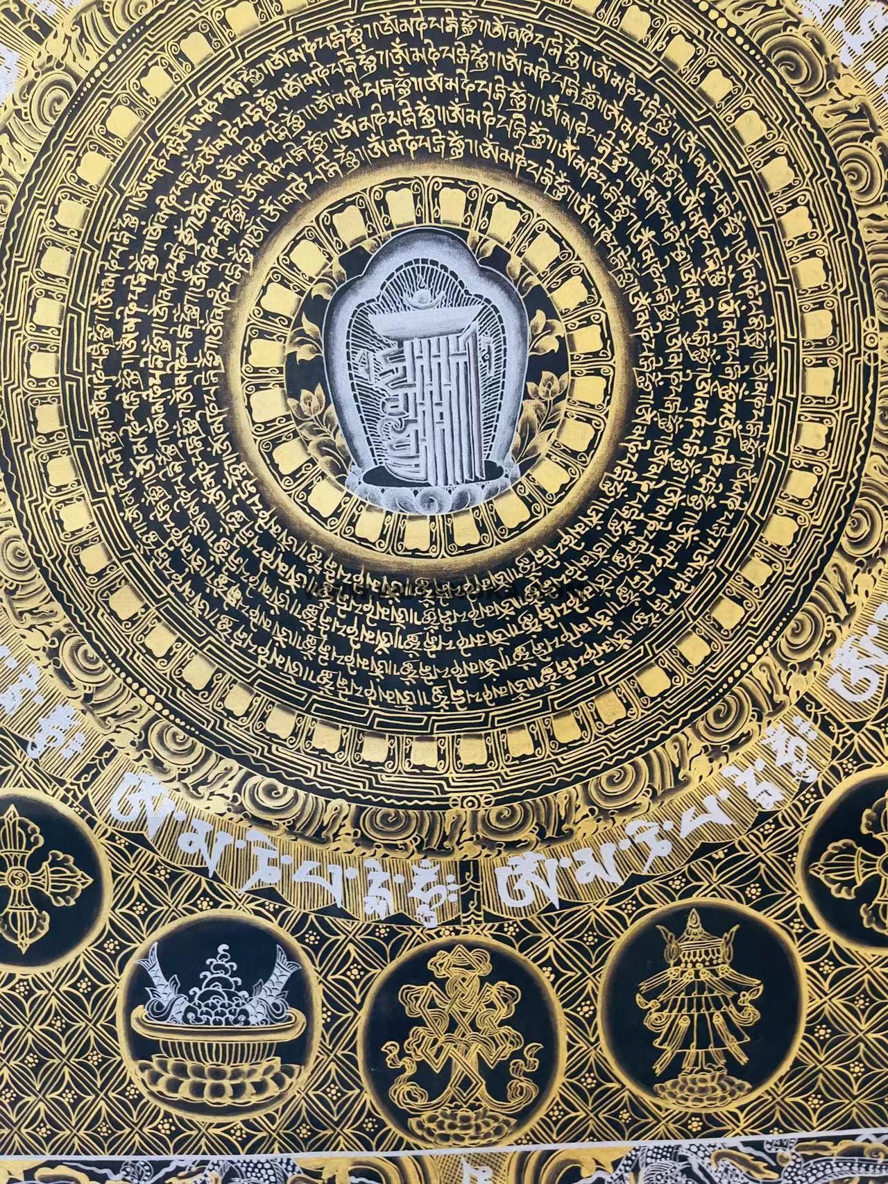 六字大明咒是观世音菩萨心咒,坛城象征宇宙本源,是圣坛的代表,挂与家里玄关之处,有镇宅辟邪的妖邪不入的作用,古代著名寺院皇宫都用此法门来镇宅辟邪,十分殊胜。