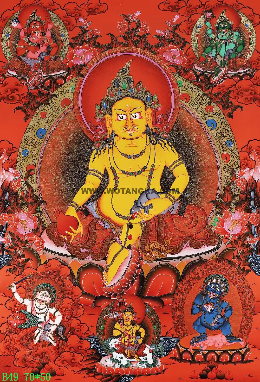 尼泊尔成名画师手绘力作,纯手绘布本唐卡【五方财神】,作品采用24K真金金粉混合天然颜料纯手绘而成。作品主尊宝相传神。布图干净精美、画工非常的细腻,严格的遵照佛经的度量仪轨如法绘制,期待有缘人。