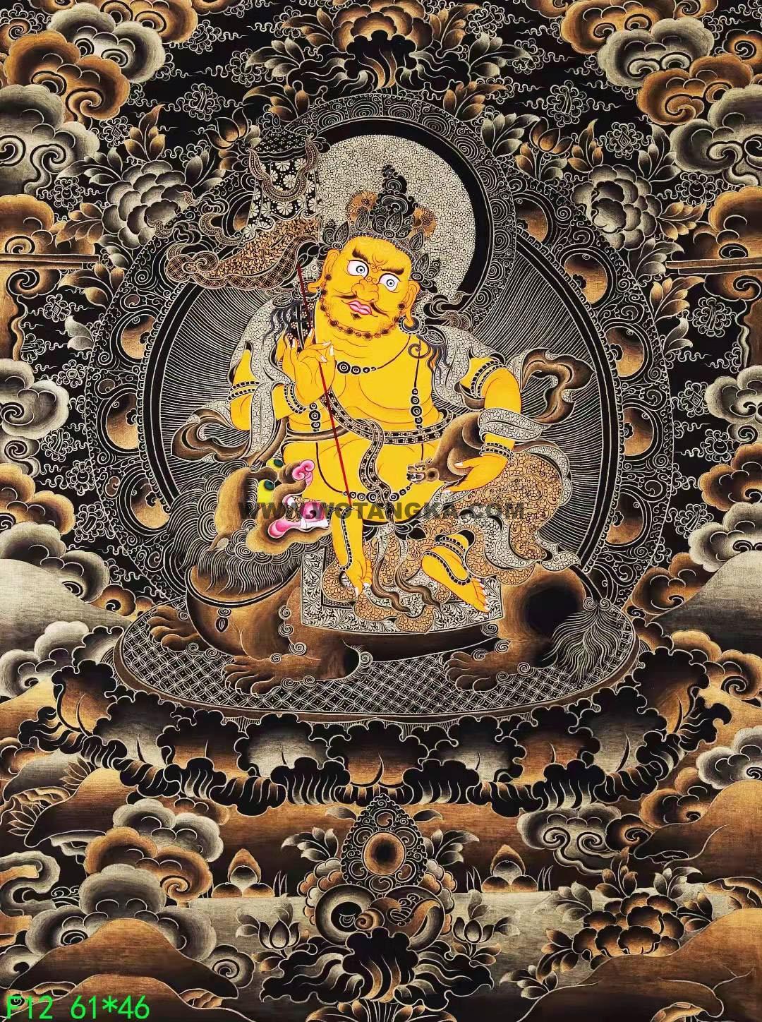尼泊尔知名唐卡大师力作《财宝天王》 唐卡手绘布本,采用天然矿物、宝石、植物、24K真金描绘。天然矿石颜料着色晕染,画工细腻,开脸殊胜,是一副难得一见的好唐卡作品。喜欢不要错过。