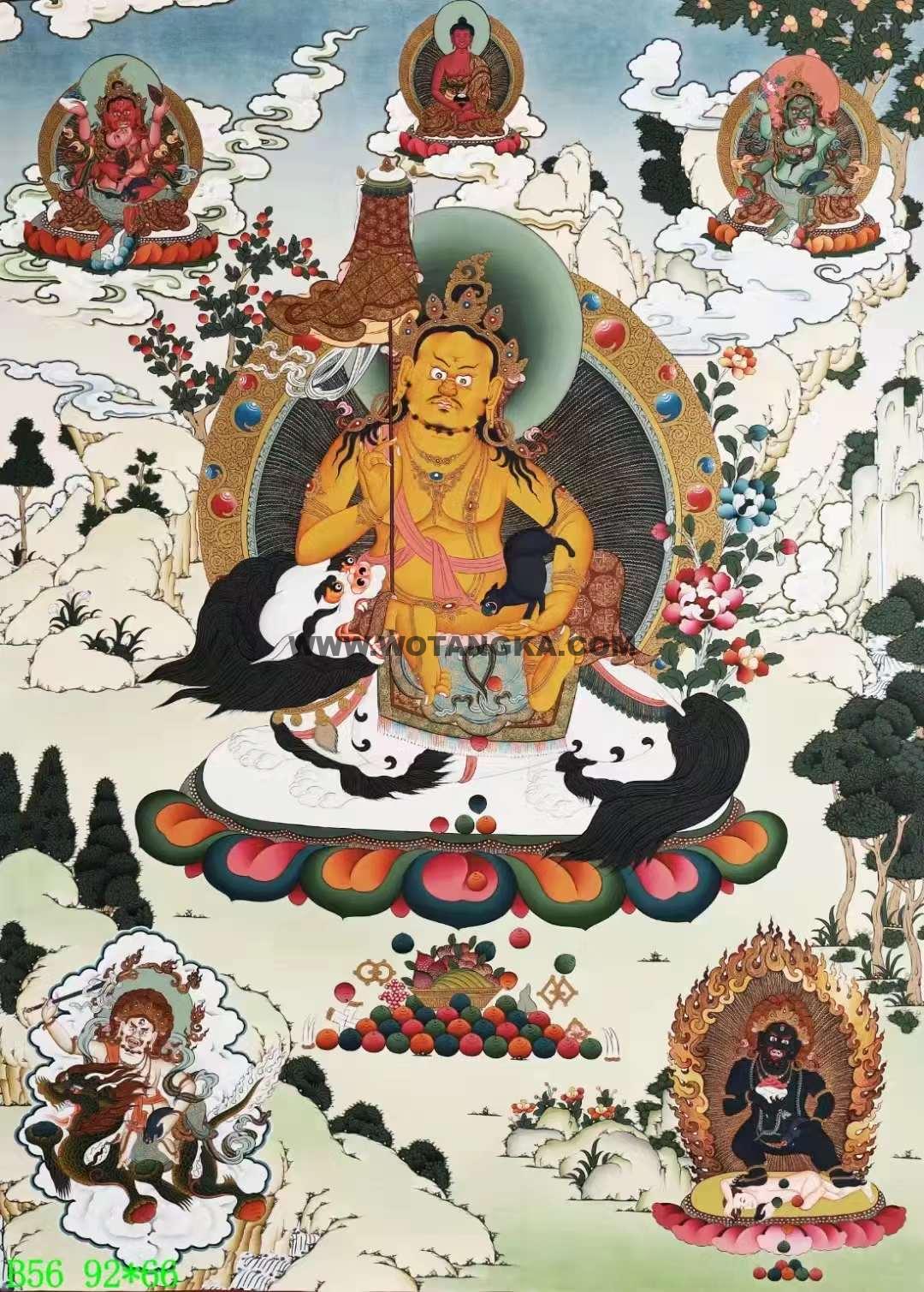 尼泊尔知名唐卡大师力作《财宝天王》 唐卡手绘布本,采用天然矿物、宝石、植物、24K真金描绘。天然矿石颜料着色晕染,画工细腻,开脸殊胜,是一副难得一见的好唐卡作品。喜欢不要错过。