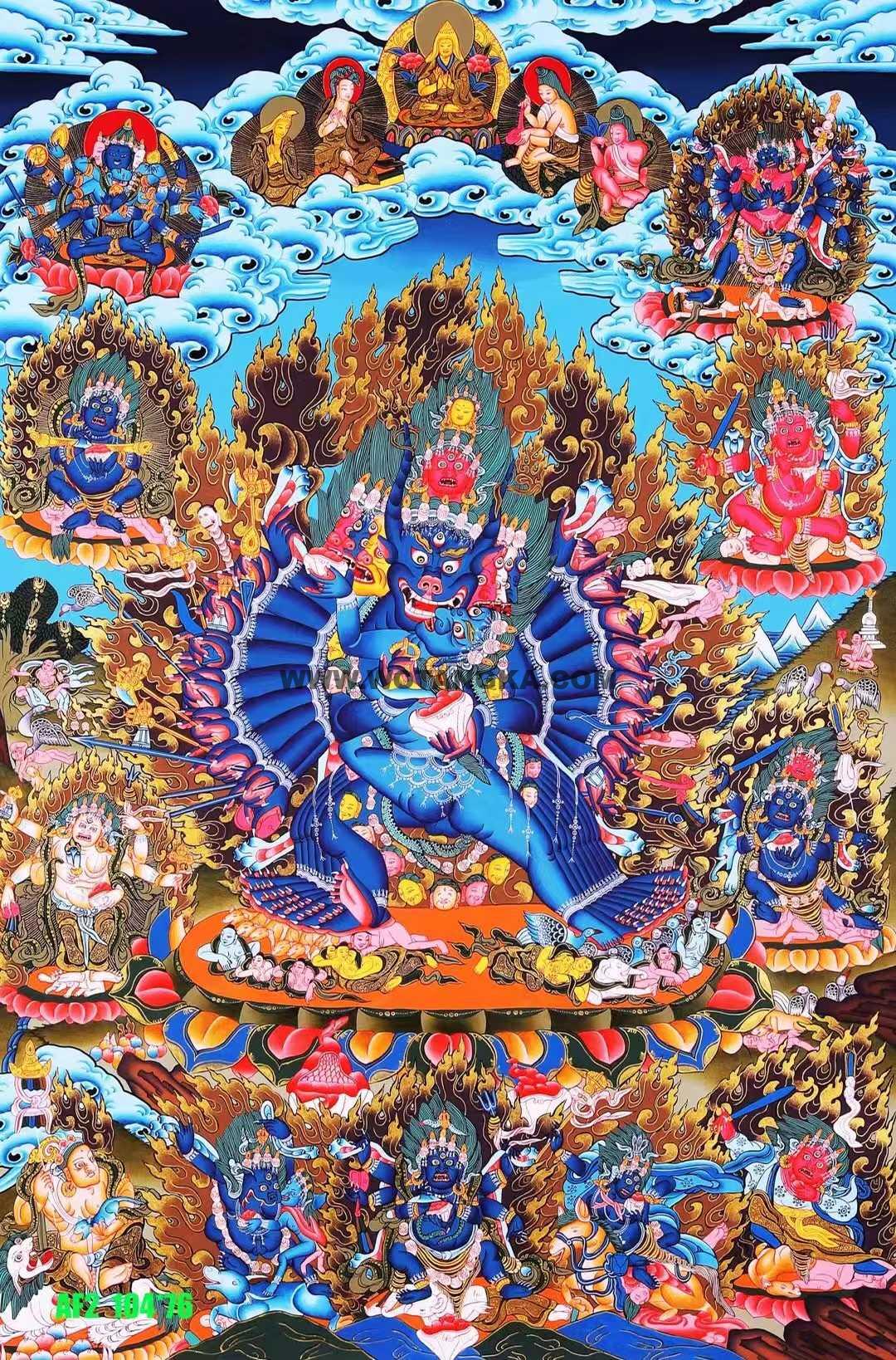 尼泊尔知名画师力作【大威德金刚】 唐卡手绘布本。作品采用金粉混合天然颜料纯手绘而成,画工细腻,开脸殊胜,能量极强,严格的遵照佛经的度量仪轨如法绘制,期待有缘人。