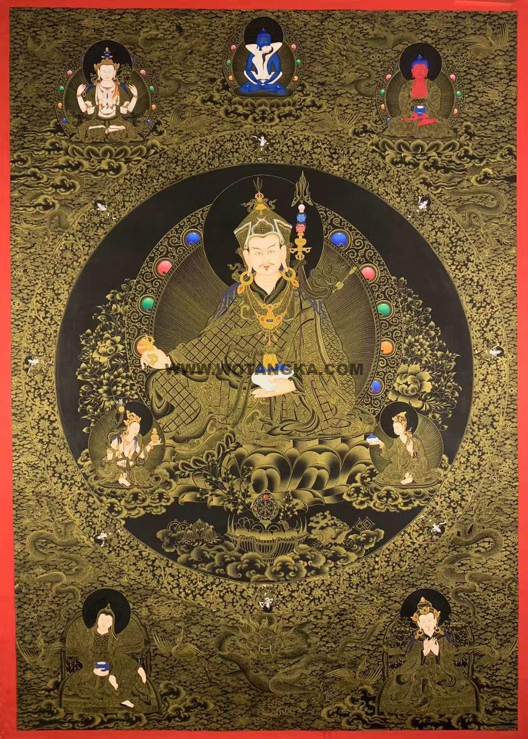 尼泊尔知名唐卡画师那姆·巴哈度力作唐卡【莲花生大士】,主尊宝相传神,作品采用24K真金描线,天然矿石颜料着色晕染,画工细腻,开脸殊胜,是一副难得一见的好唐卡作品。