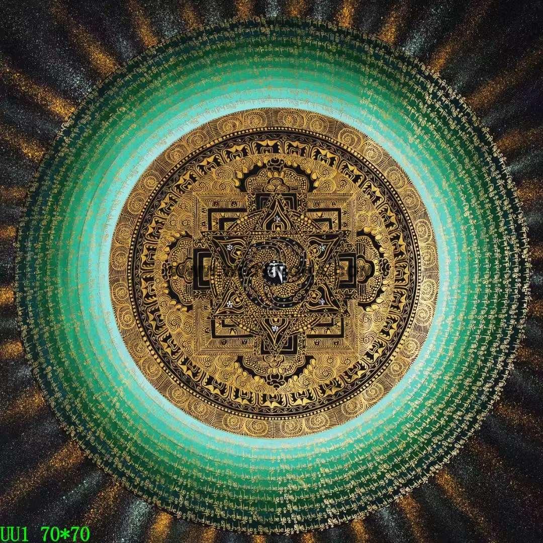 《六字真言坛城》唐卡是高端会所公司豪宅,背景墙,镇宅首选。坛城象征宇宙本源,是圣坛的代表,挂与家里玄关之处,有镇宅辟邪的妖邪不入的作用,古代著名寺院皇宫都用此法门来镇宅辟邪,十分殊胜。喜欢不要错过。六字大明咒是观世音菩萨心咒,源于梵文中,此咒含有诸佛无尽的加持与慈悲,是诸佛慈悲和智慧的音声显现。能改变命运,修成幸福健康的人生。