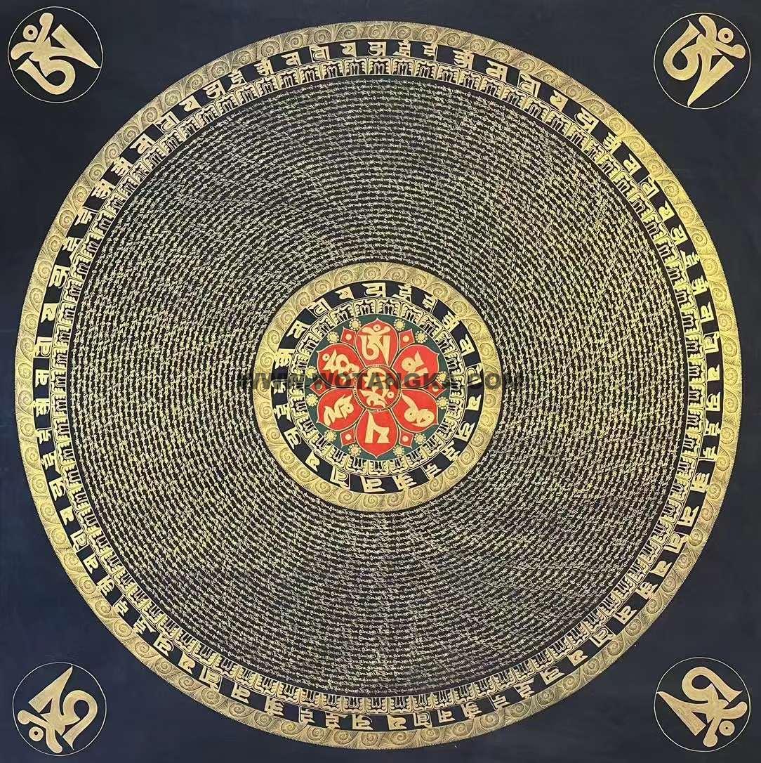 《六字真言坛城》唐卡是高端会所公司豪宅,背景墙,镇宅首选。坛城象征宇宙本源,是圣坛的代表,挂与家里玄关之处,有镇宅辟邪的妖邪不入的作用,古代著名寺院皇宫都用此法门来镇宅辟邪,十分殊胜。喜欢不要错过。六字大明咒是观世音菩萨心咒,源于梵文中,此咒含有诸佛无尽的加持与慈悲,是诸佛慈悲和智慧的音声显现。能改变命运,修成幸福健康的人生。