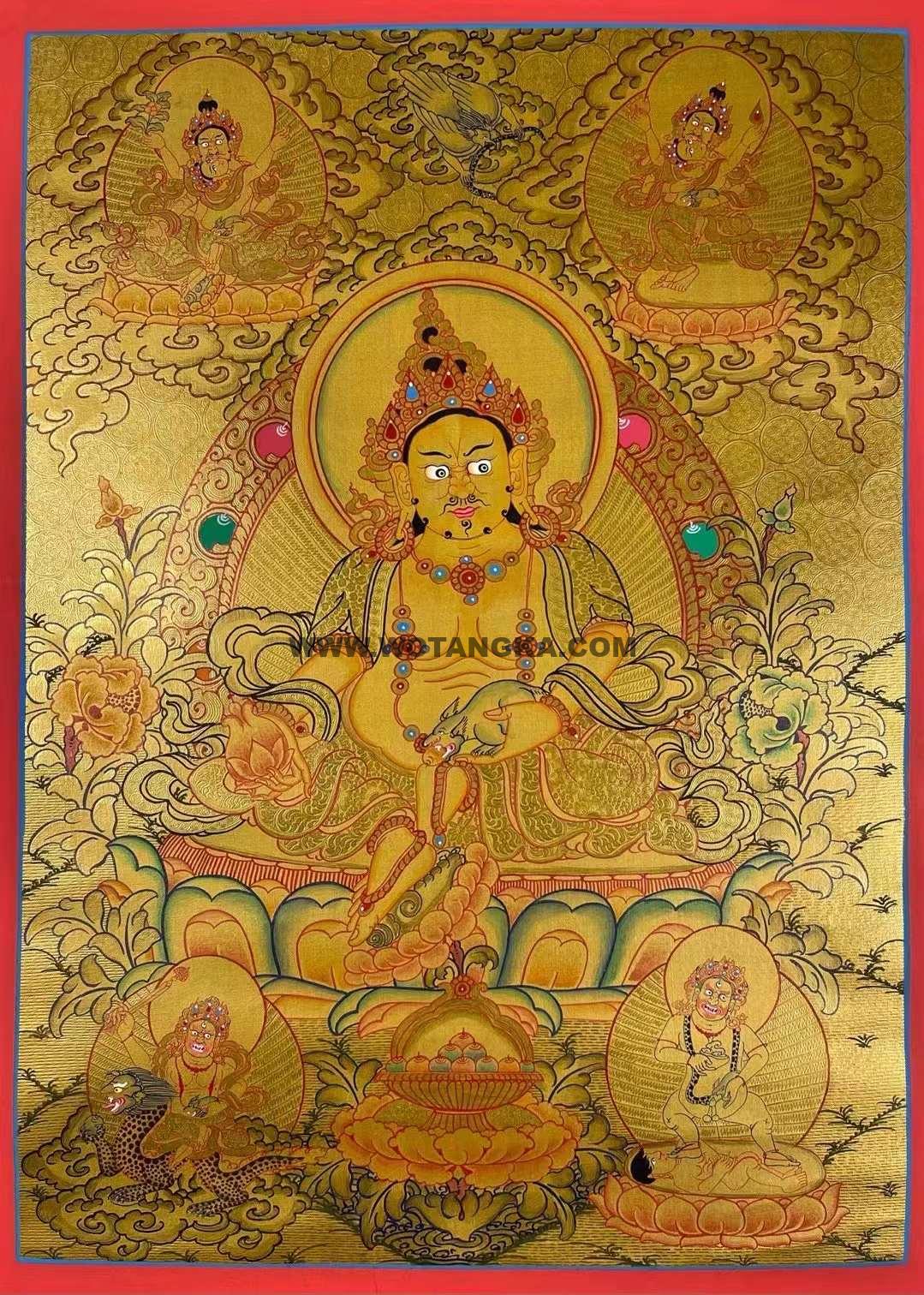 尼泊尔唐卡大师Kumar力作金箔唐卡【五方财神】主尊宝相传神,画工细腻。金箔唐卡是传统唐卡风格,有道是佛靠金装,传承唐卡文化技艺。此作品采用纯金箔玛瑙笔雕花錾刻,稀缺的矿石颜料上色完成,绘制周期漫长,十分难得,喜欢的师兄不要错过。