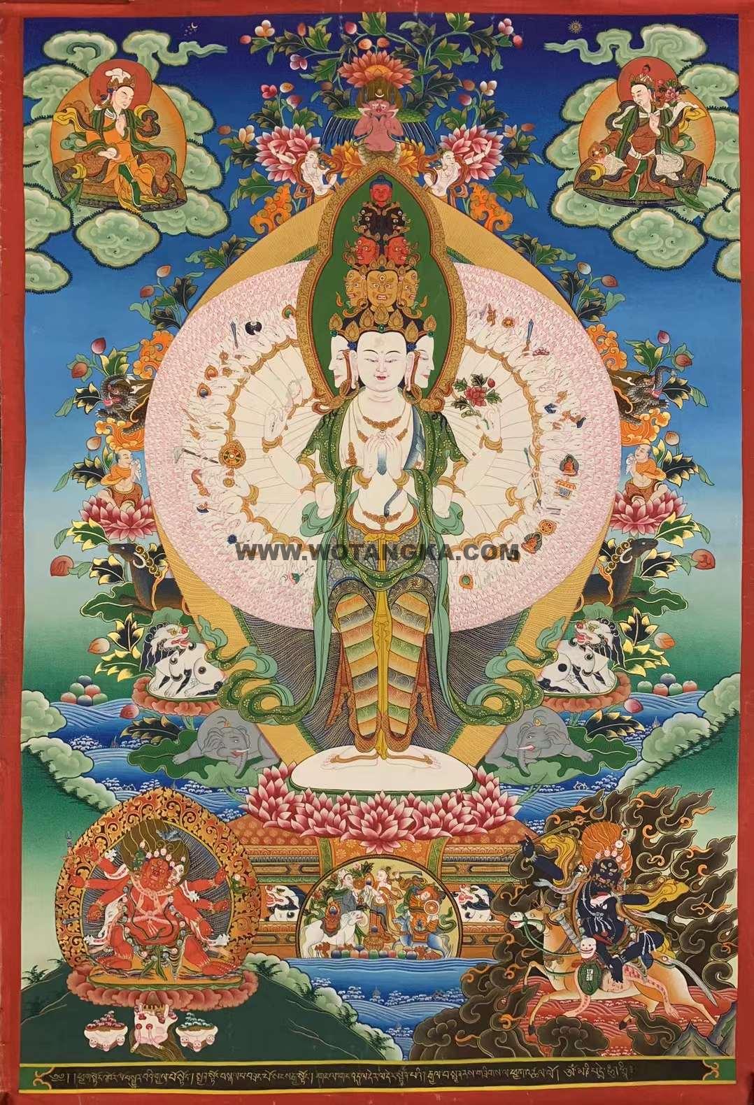 尼泊尔成名唐卡画师力作【千手观音】手绘布本唐卡,作品采用24K纯金金粉混合矿物颜料纯手绘而成。作品主尊宝相传神。布图精美、画工非常的细腻,严格的遵照佛经的度量仪轨如法绘制,期待有缘人。