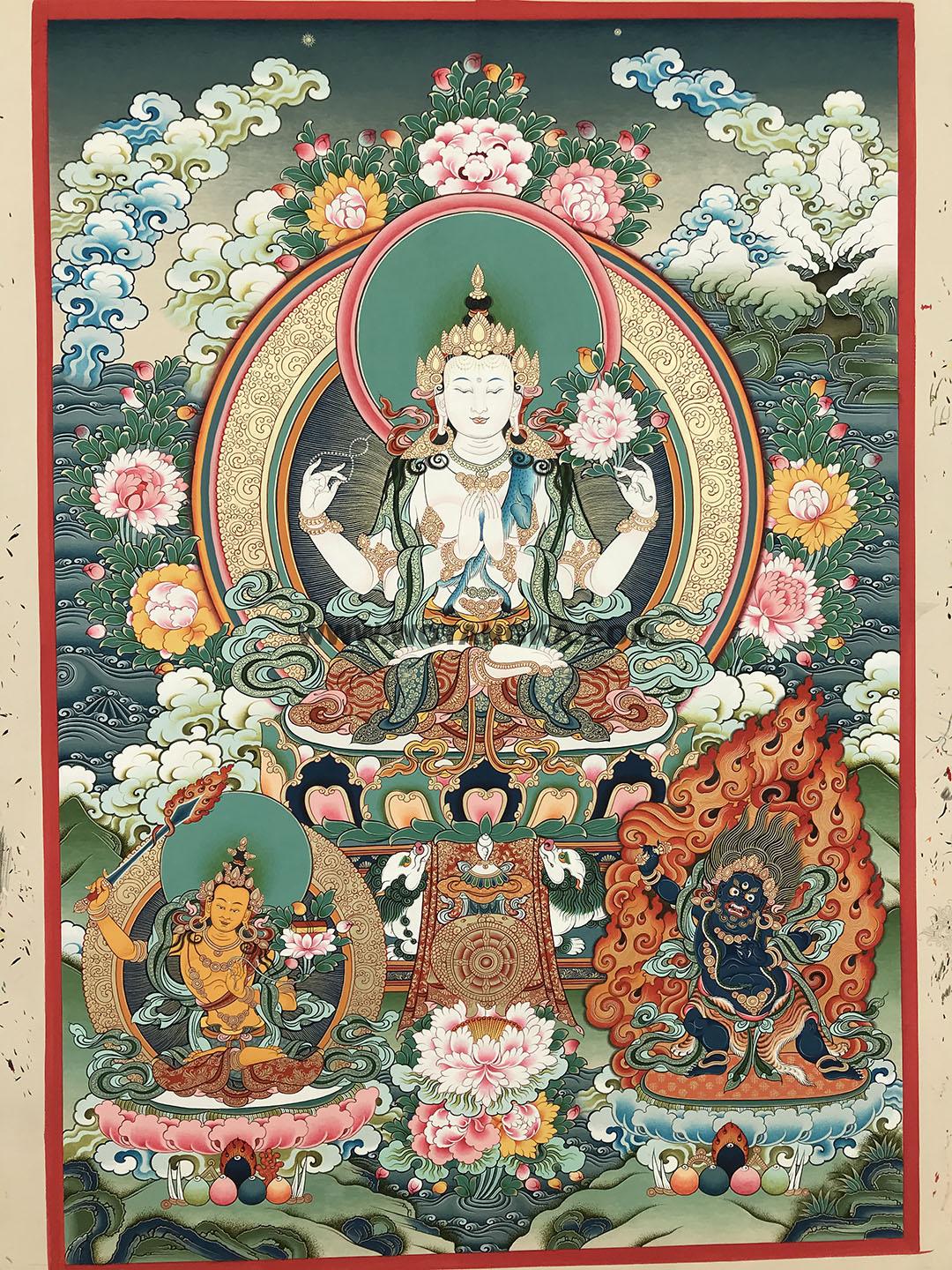 唐卡分类:四臂观音·三怙主