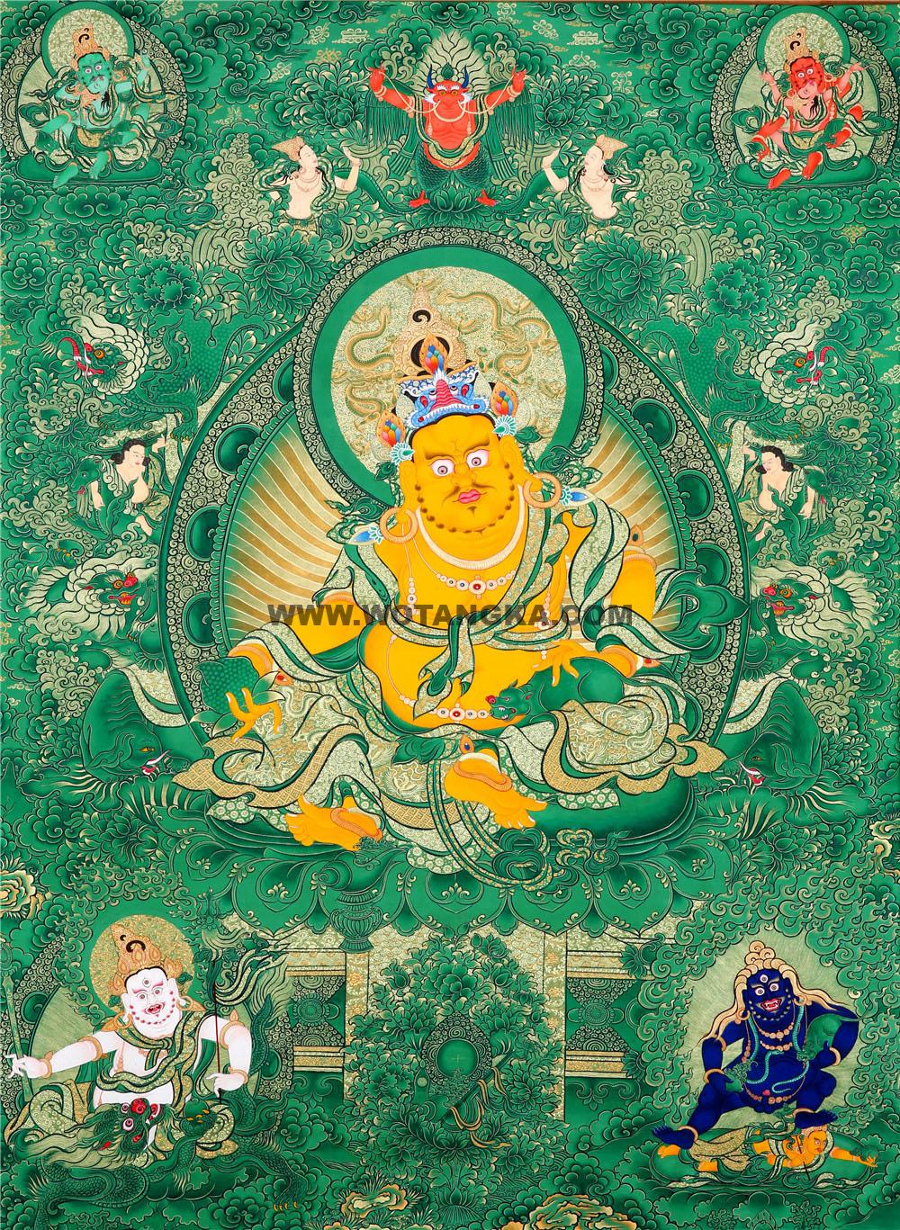 中国唐卡艺术作品中的【五方财神】唐卡手绘布本,热贡知名画师力作,收藏供奉不要错过。作品主尊宝相传神, 采用天然矿石晕染,纯金描线,画工细腻,殊胜,精美、风格富丽,采用24K真金描绘,画工细腻,开脸殊胜,是一副难得一见的好唐卡作品。