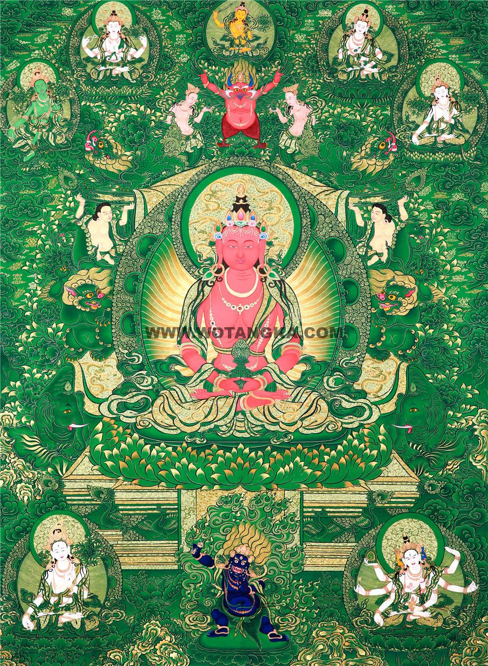 唐卡材质:白棉布、名贵矿石颜料、黄金等贵金属