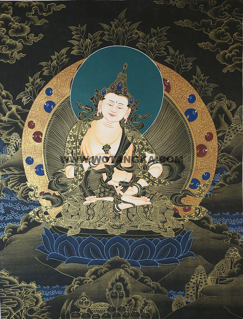 唐卡材质:白棉布、名贵矿石颜料、黄金等贵金属