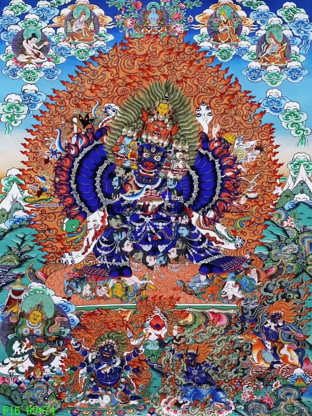 热贡画师力作【大威德金刚】 唐卡手绘布本。作品采用金粉混合天然颜料纯手绘而成,画工细腻,开脸殊胜,能量极强,严格的遵照佛经的度量仪轨如法绘制,期待有缘人。