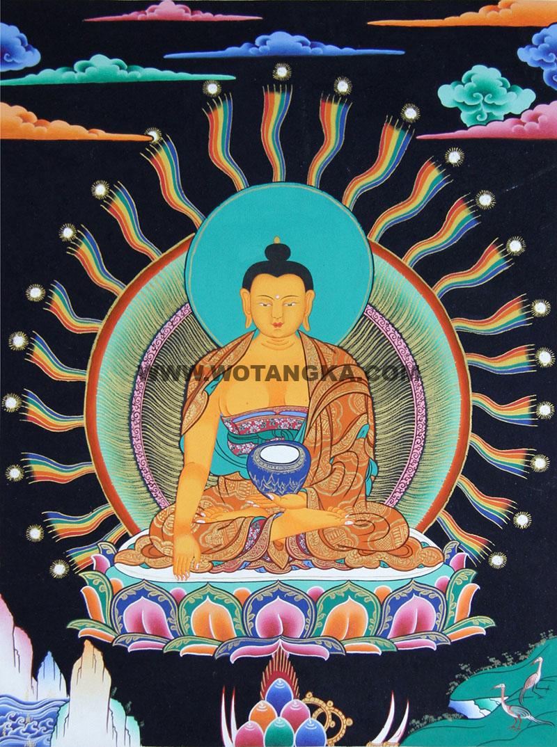 唐卡材质:白棉布、名贵矿石颜料、黄金等贵金属