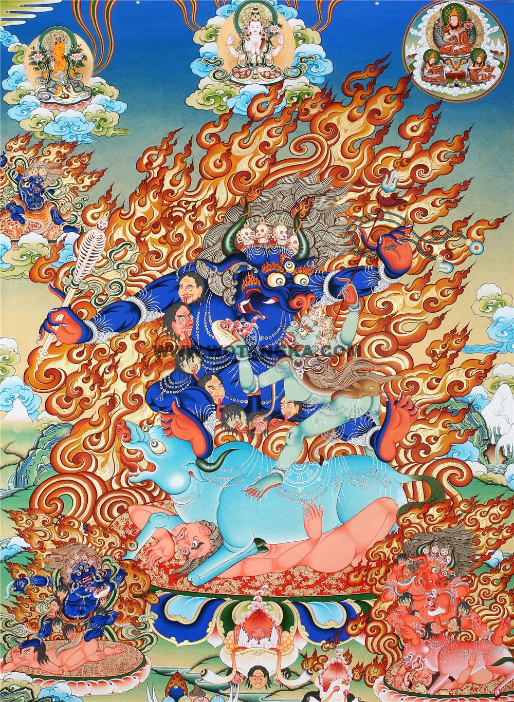 降阎魔尊,又称阎魔敌、地狱主,是大威德金刚的变体之一。“降”字的读音是“祥”,降伏。