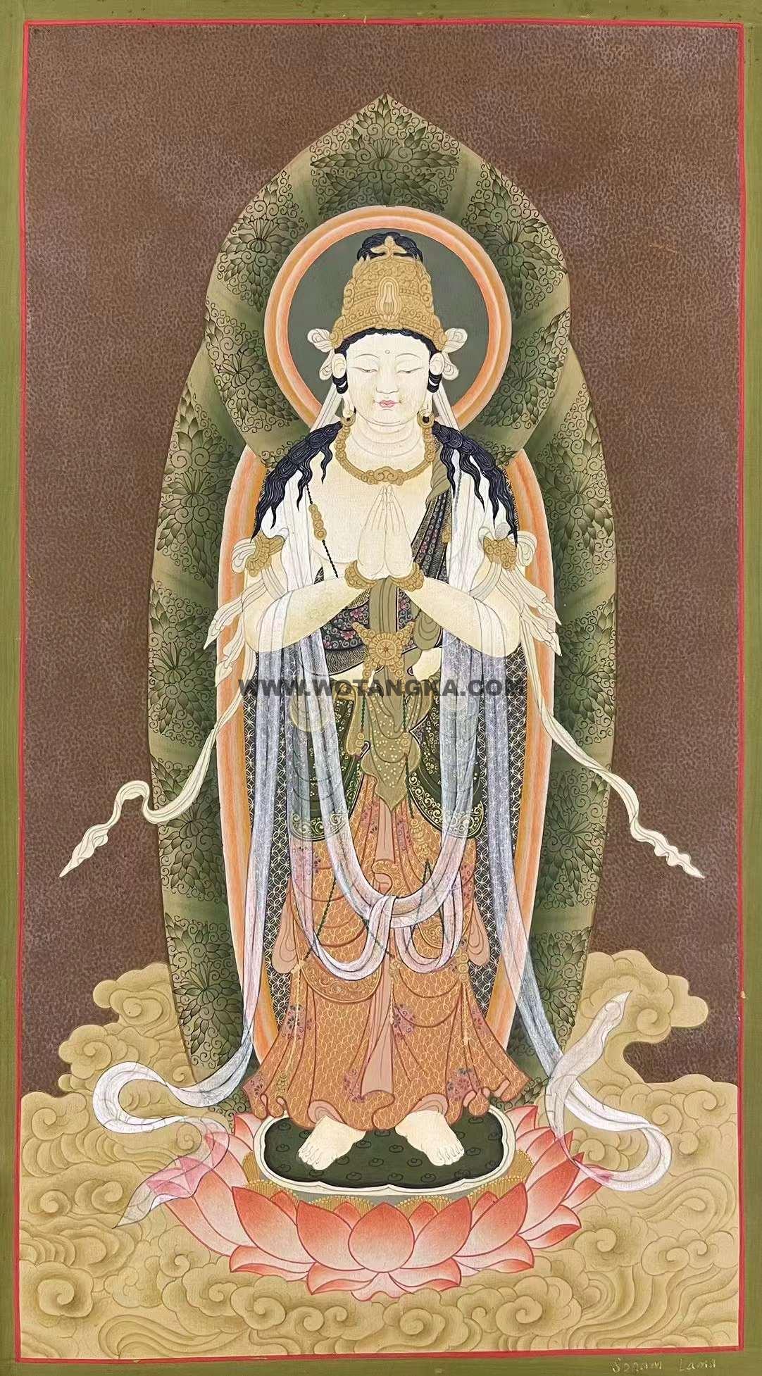 尼泊尔顶级东密唐卡大师索朗达茫力作【观音菩萨】唐卡手绘布本,纯金作品,画工极为精湛,达瓦大师是尼泊尔国宝级别东密画师苏亚师傅的首席大弟子,也是目前尼泊尔最好的东密唐卡大师之一。