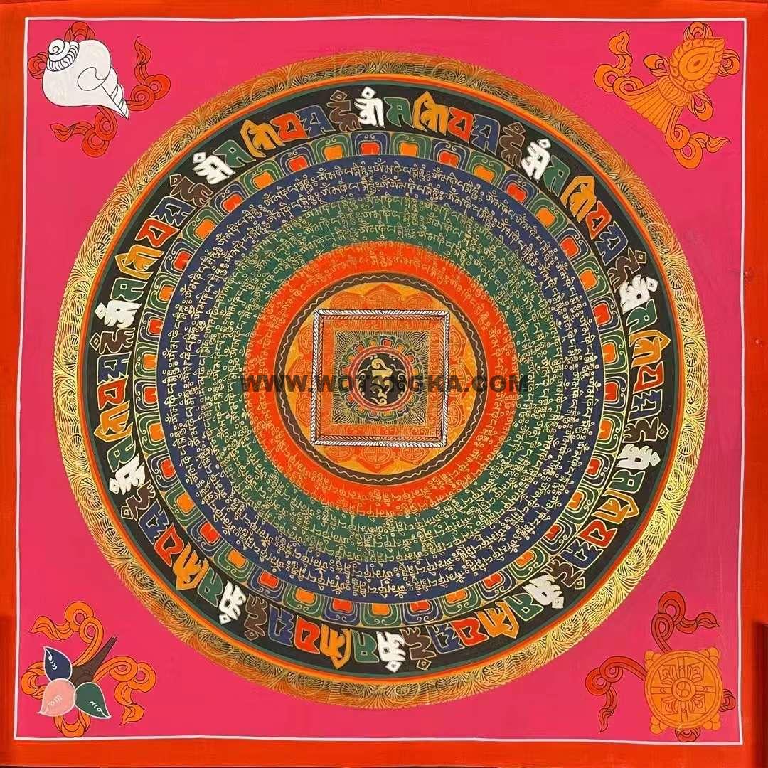 尼泊尔知名画僧力作精品唐卡坛城-六字真言坛城。《六字真言坛城》唐卡是高端会所公司豪宅,背景墙,镇宅首选。