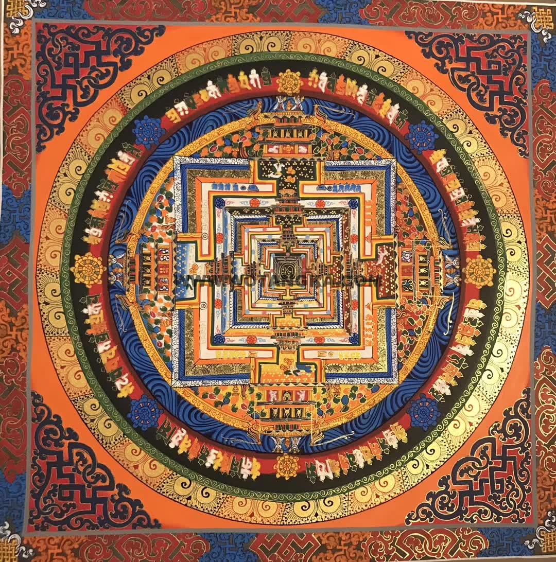 尼泊尔知名唐卡画师《时轮金刚坛城》唐卡手绘布本,采用24K真金描线,天然矿石颜料着色晕染,画工细腻,是一副难得一见的好唐卡作品。