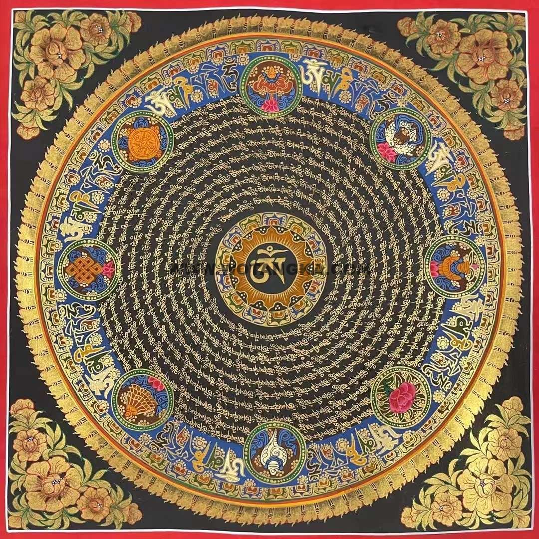 尼泊尔知名唐卡大师作品《吉祥八宝坛城》,作品采用24K真金磨粉描线,混合天然颜料纯手绘而成。作品主尊宝相传神,布图干净精美、画工非常的细腻,严格的遵照佛经的度量仪轨如法绘制,期待有缘人。