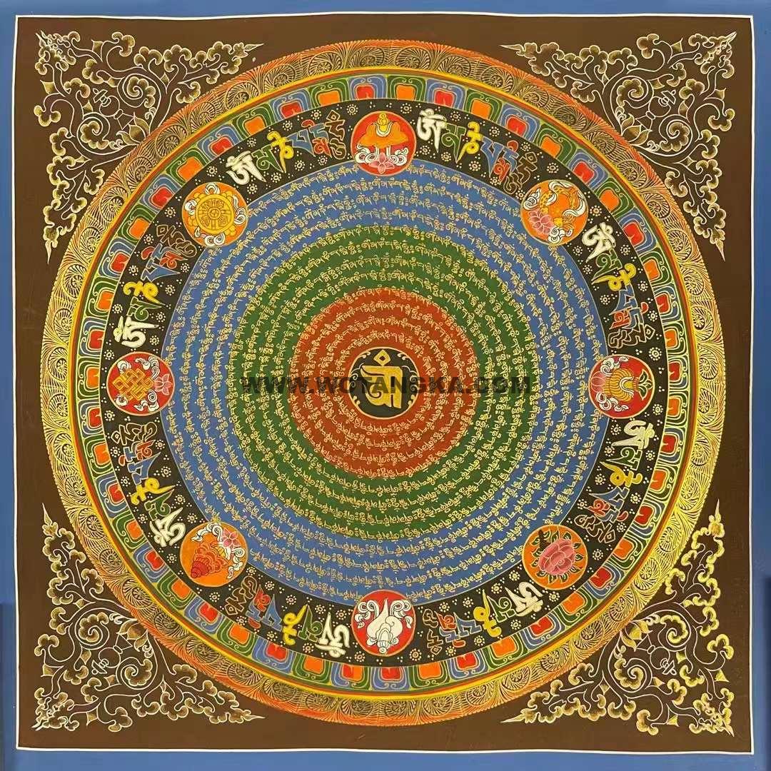尼泊尔知名唐卡大师作品《吉祥八宝坛城》,作品采用24K真金磨粉描线,混合天然颜料纯手绘而成。作品主尊宝相传神,布图干净精美、画工非常的细腻,严格的遵照佛经的度量仪轨如法绘制,期待有缘人。