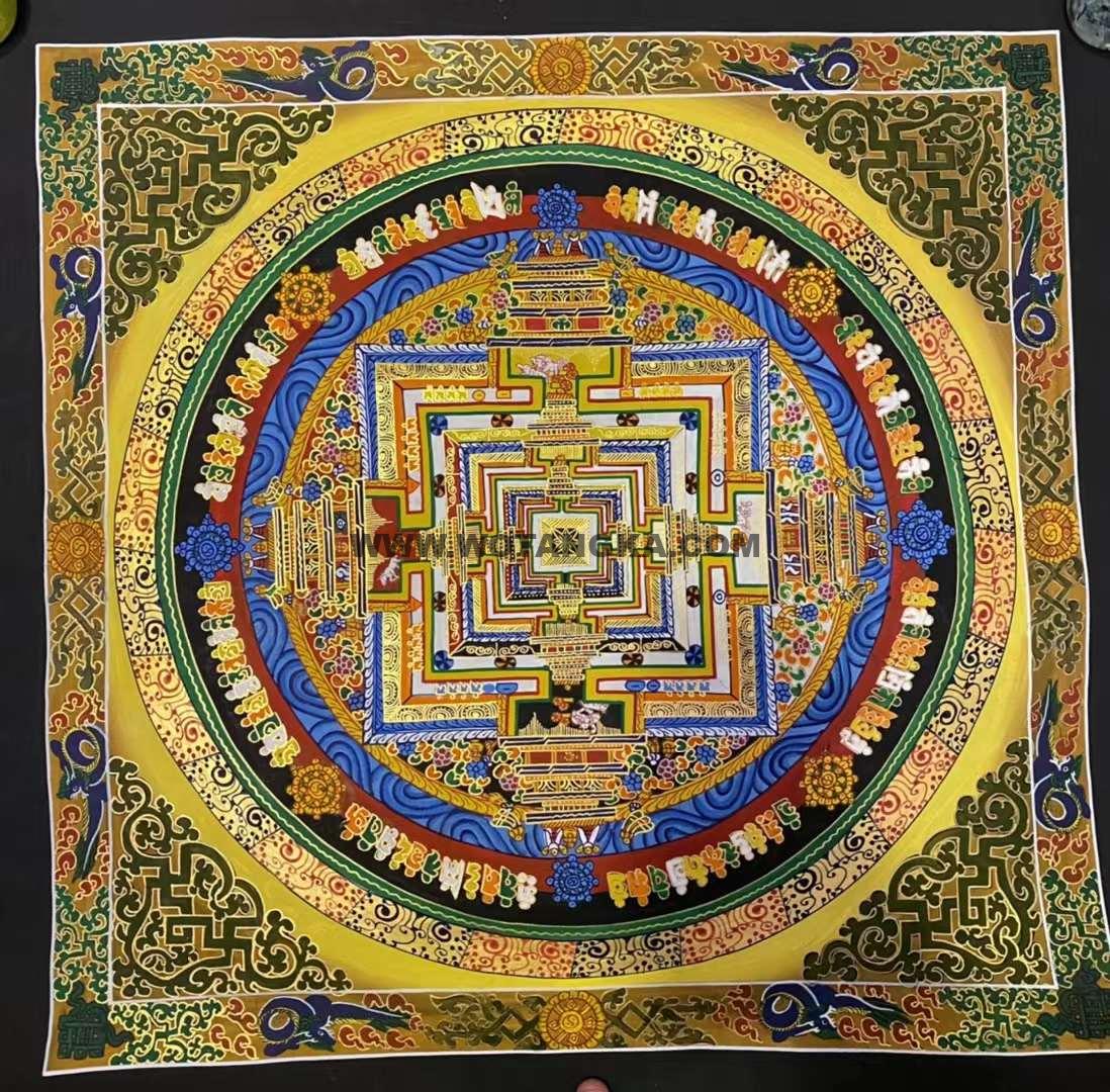 尼泊尔知名唐卡画师《时轮金刚坛城》唐卡手绘布本,采用24K真金描线,天然矿石颜料着色晕染,画工细腻,是一副难得一见的好唐卡作品。