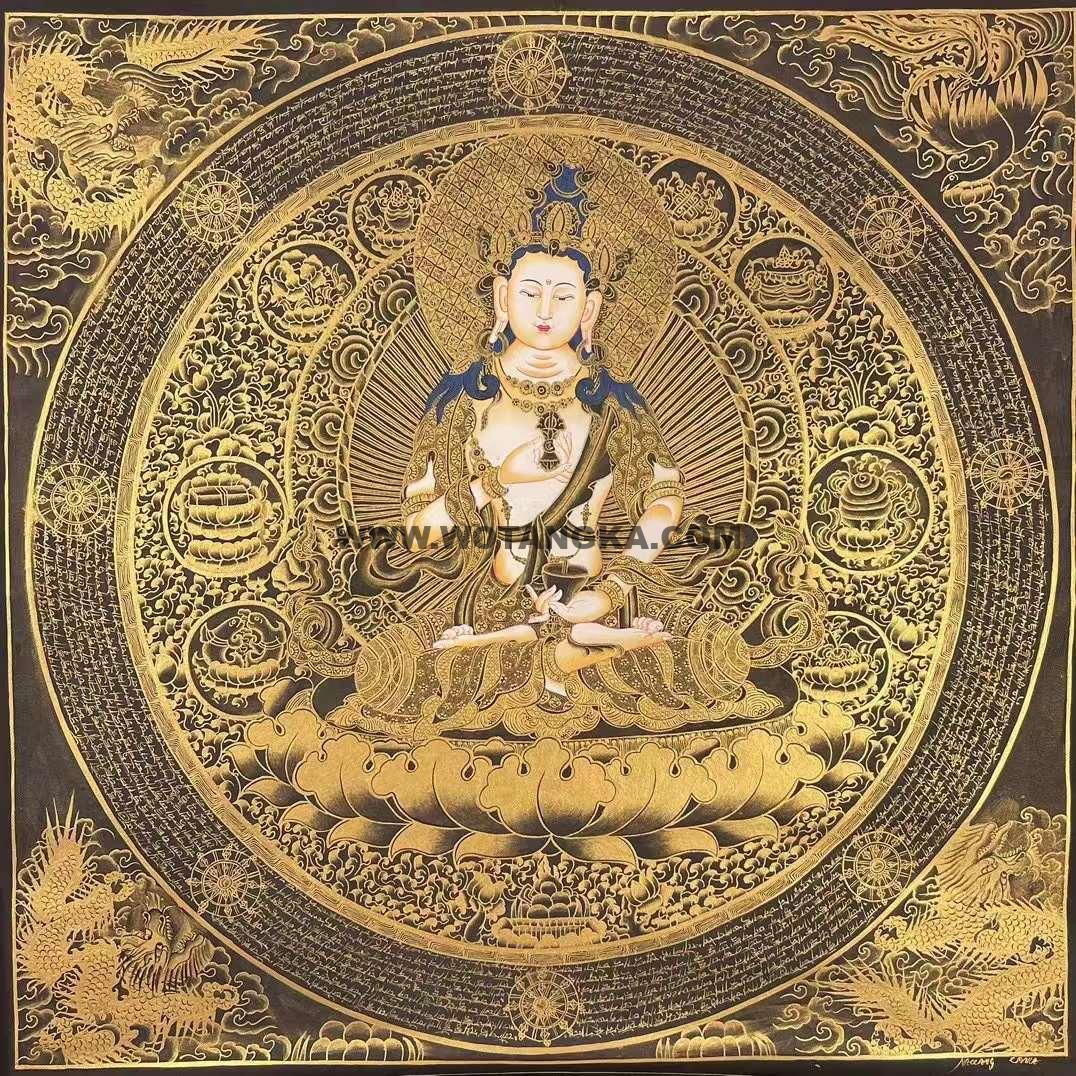 唐卡材质:白棉布、名贵矿石颜料、黄金等贵金属