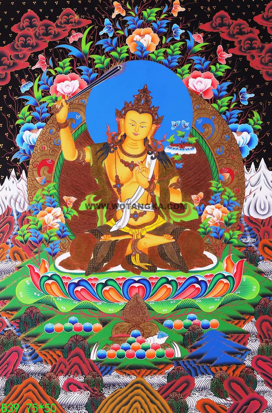 尼泊尔成名画师手绘力作,纯手绘布本唐卡【文殊菩萨】,作品采用24K真金金粉混合天然颜料纯手绘而成。作品主尊宝相传神。布图干净精美、画工非常的细腻,严格的遵照佛经的度量仪轨如法绘制,期待有缘人。