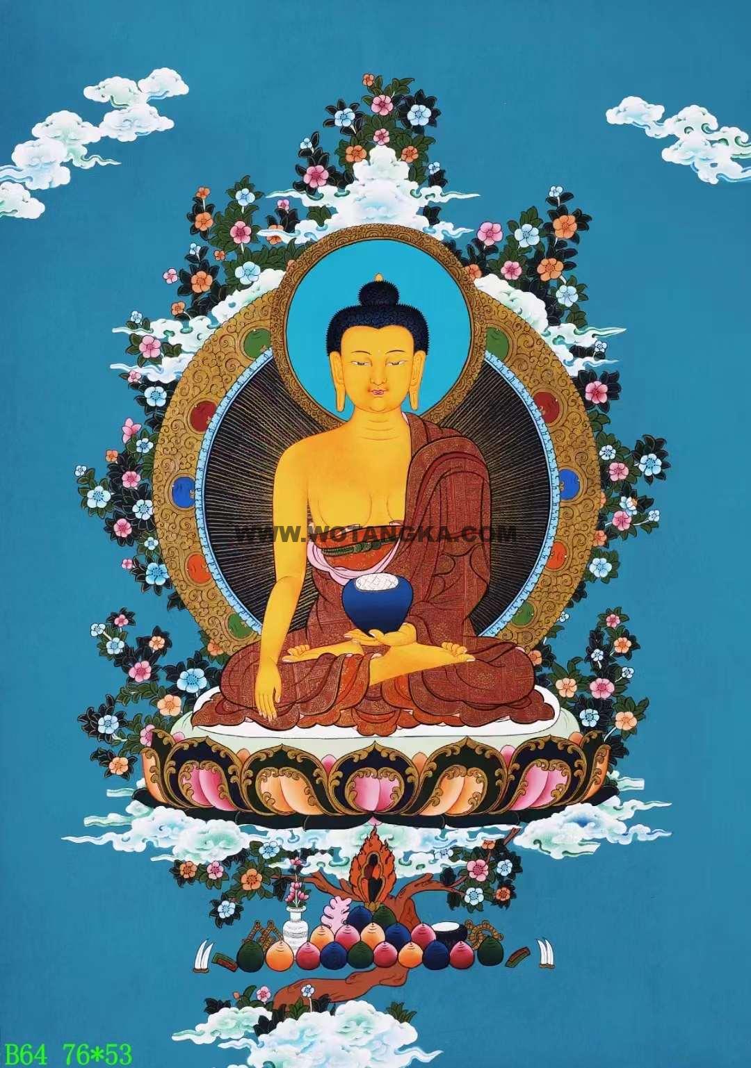 尼泊尔成名画师手绘力作精品,纯手绘布本唐卡【释迦牟尼佛】,作品采用24K真金金粉混合天然颜料纯手绘而成。作品主尊宝相传神。布图干净精美、画工非常的细腻,严格的遵照佛经的度量仪轨如法绘制,期待有缘人。