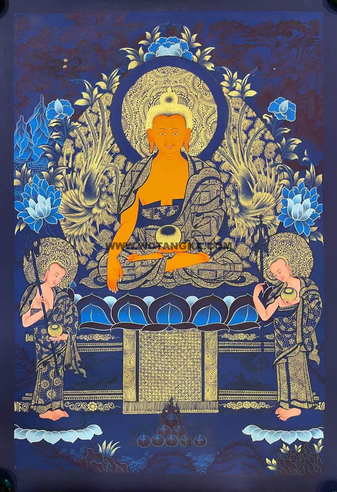 尼泊尔传统手绘布本唐卡-【释迦牟尼佛】主尊宝相传神,天然矿石颜料着色晕染,纯金勾线,画工细腻。