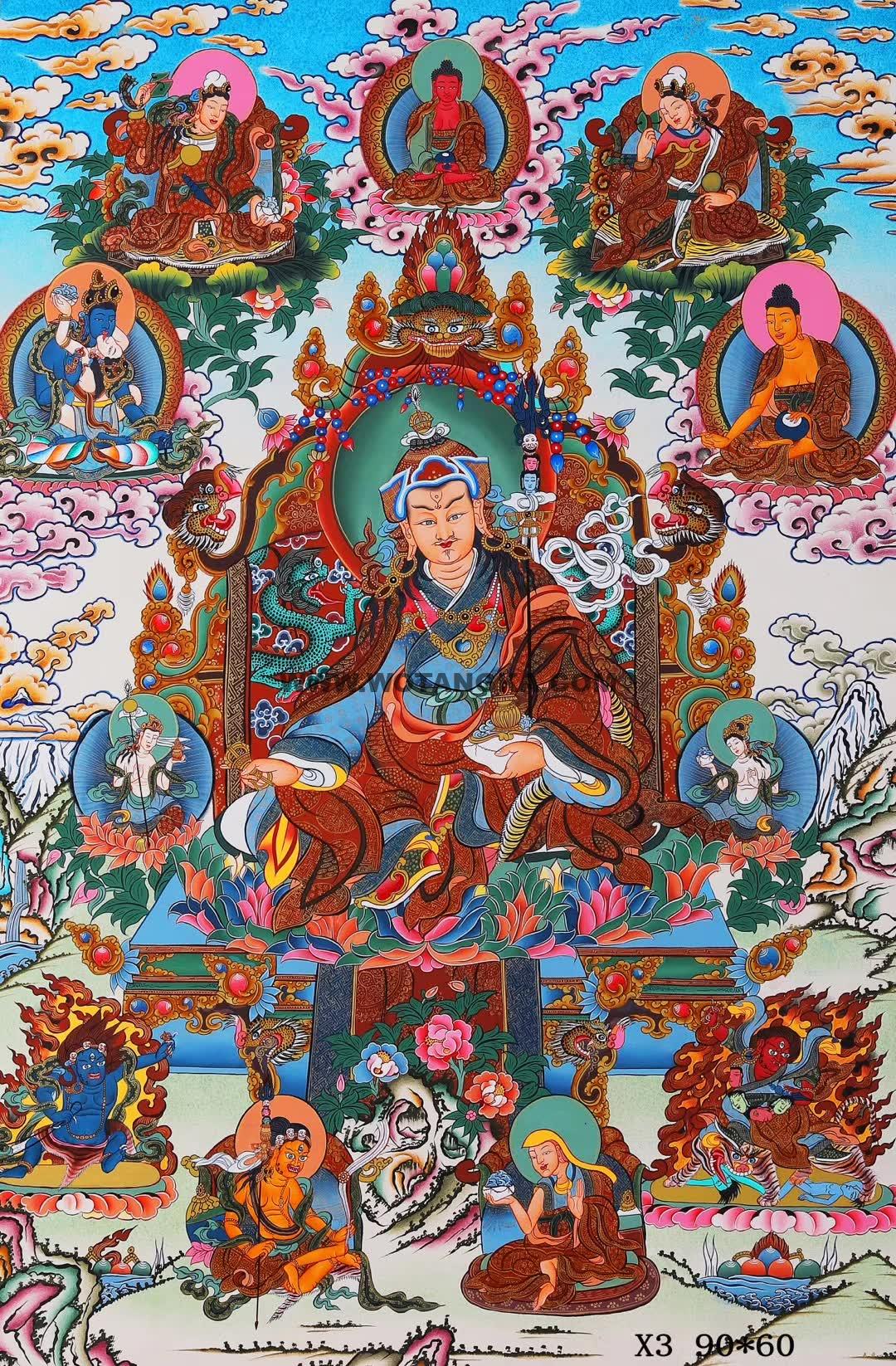 莲花生大士梵语音译为巴特玛萨木巴瓦,印度僧人建立藏传佛教前弘期传承的重要人物,西藏密宗红教开山祖师,8世纪后半期把佛教密宗传入西藏,帮助西藏正式建立了佛教传播的基础,因此受到藏族人民的爱戴,尊奉他为藏密的开基祖,是宁玛派的传承祖师,无上密乘大圆满教法的传承祖师。莲花生大士集智慧、慈悲和伏恶的力量于一身,拥有无边的法力,清除一切违缘障法,祈祷莲师有不可思议的功德。