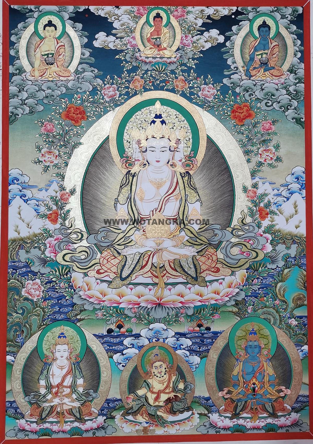 唐卡材质:白棉布、名贵矿石颜料、黄金等贵金属
