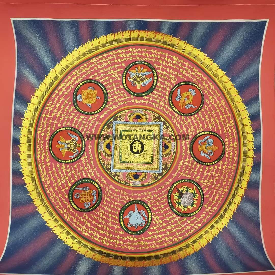 尼泊尔知名唐卡大师作品《吉祥八宝坛城》,作品采用24K真金磨粉描线,混合天然颜料纯手绘而成。作品主尊宝相传神,布图干净精美、画工非常的细腻,严格的遵照佛经的度量仪轨如法绘制,期待有缘人。