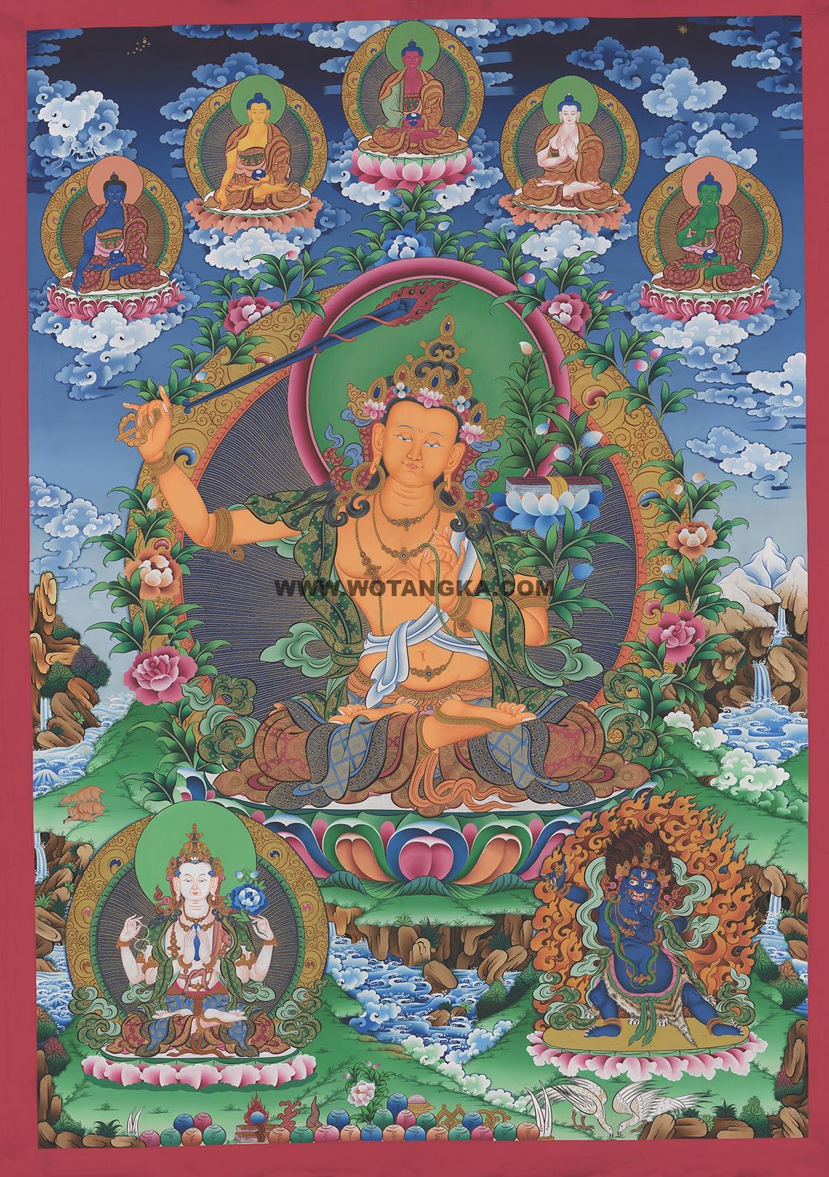 沃唐卡编号AC34486:文殊菩萨·三怙主