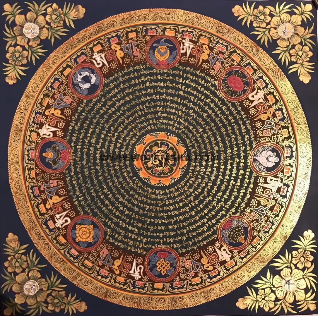 尼泊尔知名唐卡大师作品《吉祥八宝坛城》,作品采用24K真金磨粉描线,混合天然颜料纯手绘而成。作品主尊宝相传神,布图干净精美、画工非常的细腻,严格的遵照佛经的度量仪轨如法绘制,期待有缘人。