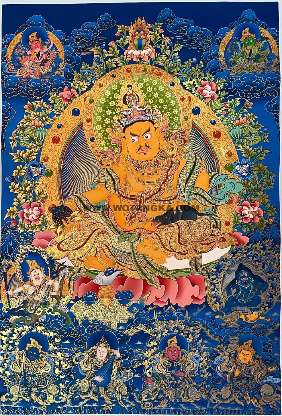 尼泊尔知名唐卡画师作品,纯手绘布本唐卡【五方财神·四大天王】,作品采用24K真金金粉混合天然颜料纯手绘而成。作品主尊宝相传神。布图干净精美、画工非常的细腻,严格的遵照佛经的度量仪轨如法绘制,期待有缘人。