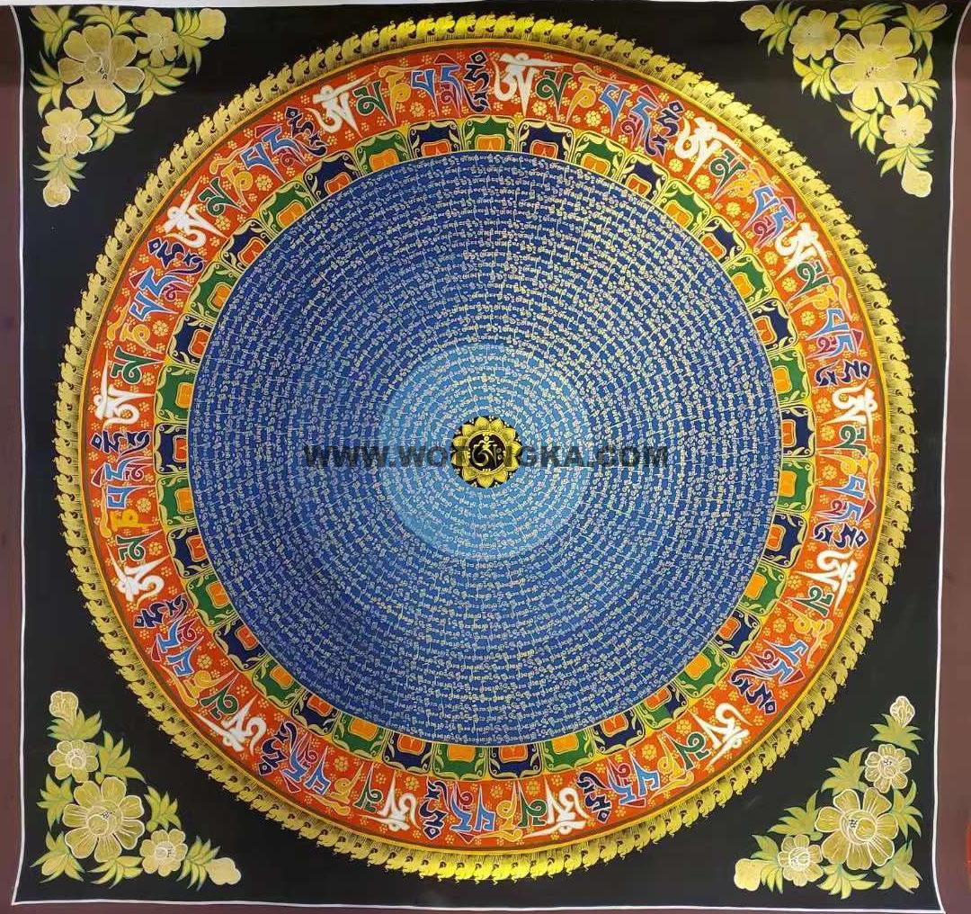 坛城象征宇宙本源,是圣坛的代表,挂与家里玄关之处,有镇宅辟邪的妖邪不入的作用,古代著名寺院皇宫都用此法门来镇宅辟邪,十分殊胜。喜欢不要错过。六字大明咒是观世音菩萨心咒,源于梵文中,此咒含有诸佛无尽的加持与慈悲,是诸佛慈悲和智慧的音声显现。能改变命运,修成幸福健康的人生。