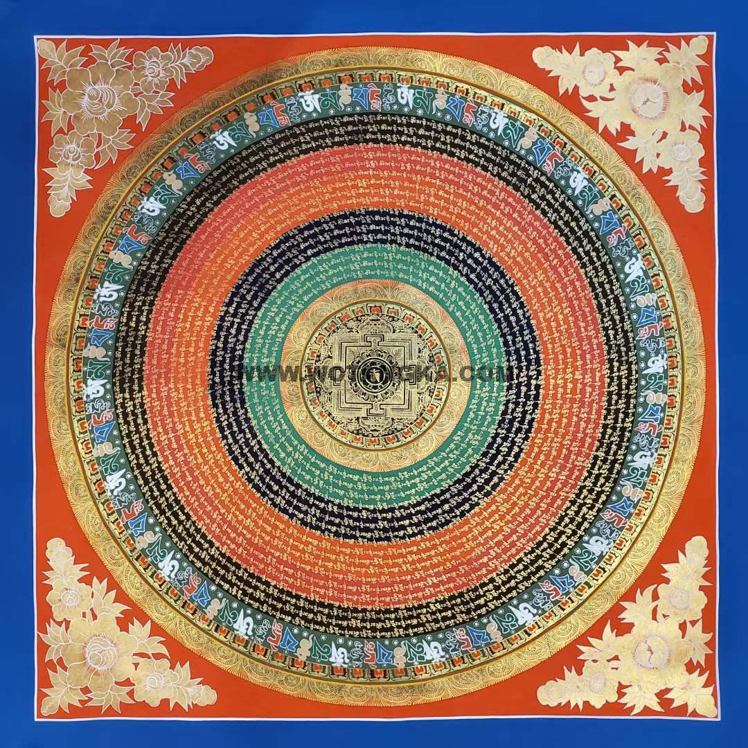 坛城象征宇宙本源,是圣坛的代表,挂与家里玄关之处,有镇宅辟邪的妖邪不入的作用,古代著名寺院皇宫都用此法门来镇宅辟邪,十分殊胜。喜欢不要错过。六字大明咒是观世音菩萨心咒,源于梵文中,此咒含有诸佛无尽的加持与慈悲,是诸佛慈悲和智慧的音声显现。能改变命运,修成幸福健康的人生。