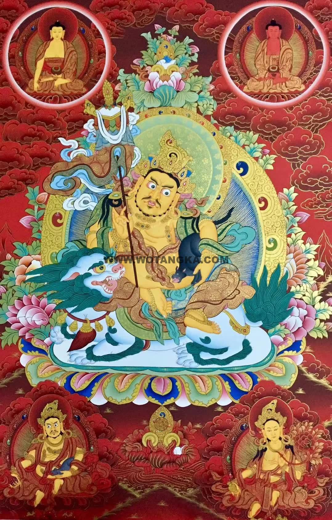 尼泊尔知名唐卡画师作品《财宝天王》,作品采用24K真金描线,混合天然颜料纯手绘而成。作品主尊宝相传神,布图干净精美、画工非常的细腻,严格的遵照佛经的度量仪轨如法绘制,期待有缘人。
