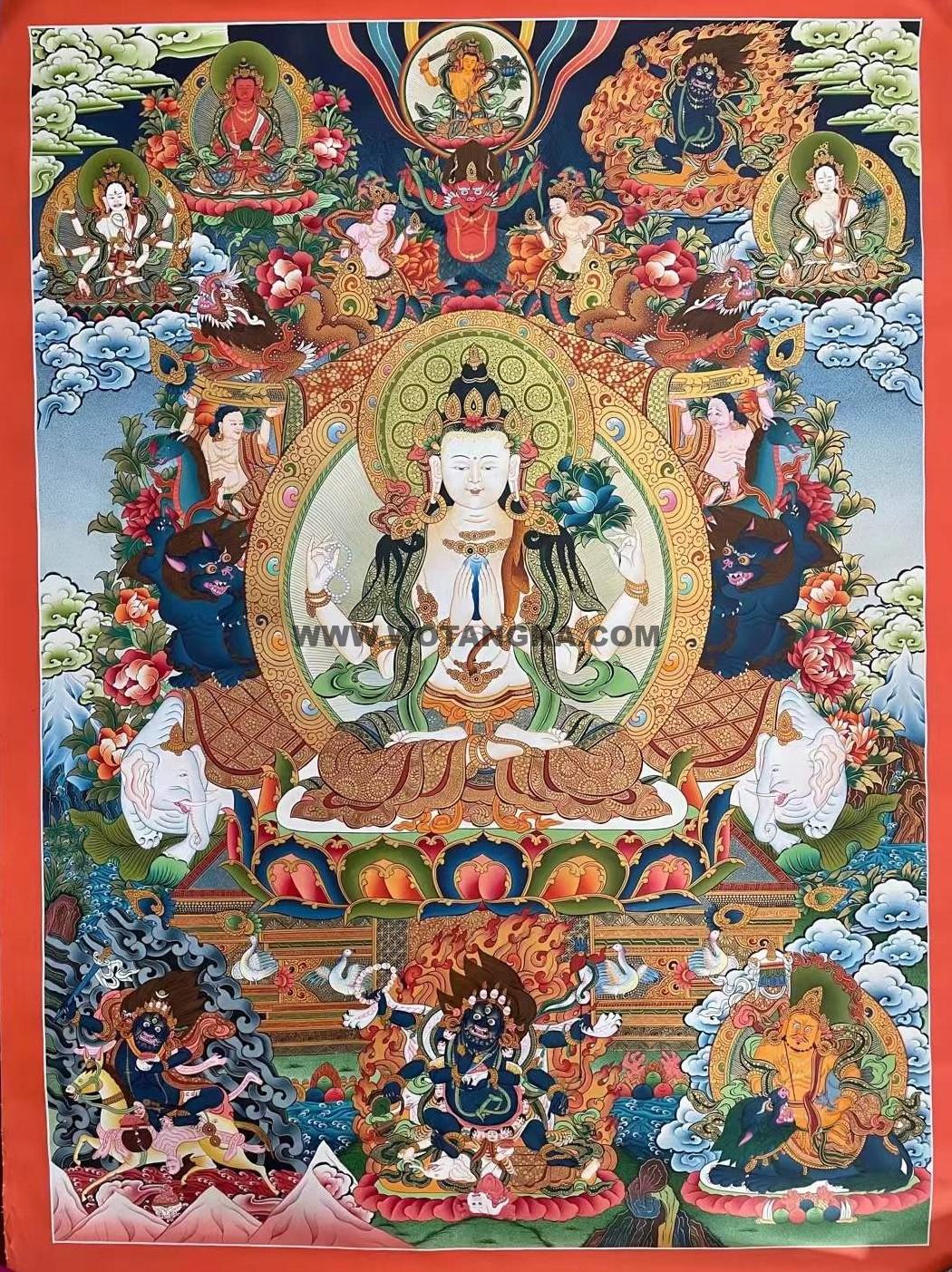 唐卡材质:白棉布、名贵矿石颜料、黄金等贵金属