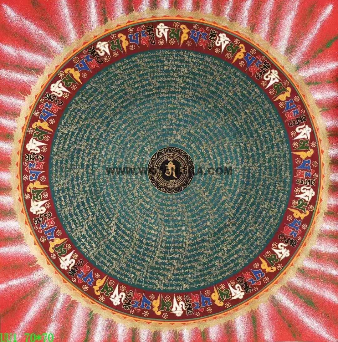 坛城象征宇宙本源,是圣坛的代表,挂与家里玄关之处,有镇宅辟邪的妖邪不入的作用,古代著名寺院皇宫都用此法门来镇宅辟邪,十分殊胜。喜欢不要错过。六字大明咒是观世音菩萨心咒,源于梵文中,此咒含有诸佛无尽的加持与慈悲,是诸佛慈悲和智慧的音声显现。能改变命运,修成幸福健康的人生。