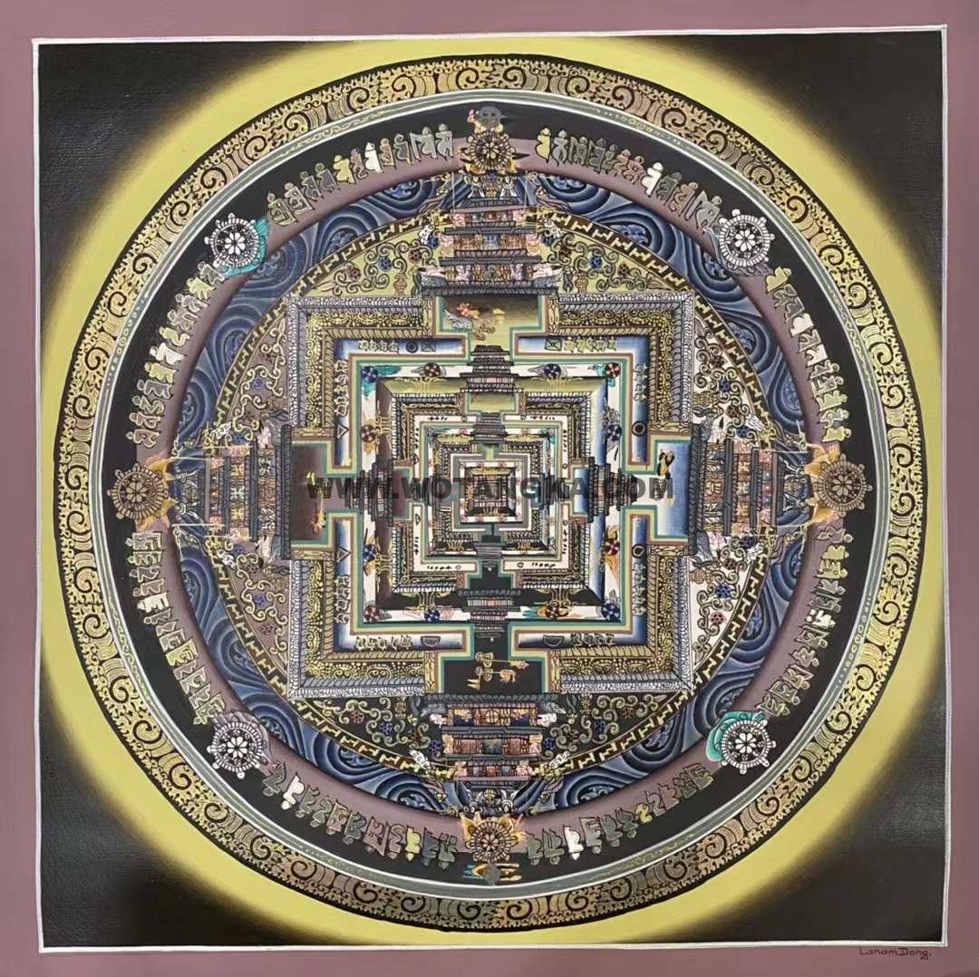 尼泊尔知名唐卡画师《时轮金刚坛城》唐卡手绘布本,采用24K真金描线,天然矿石颜料着色晕染,画工细腻,是一副难得一见的好唐卡作品。