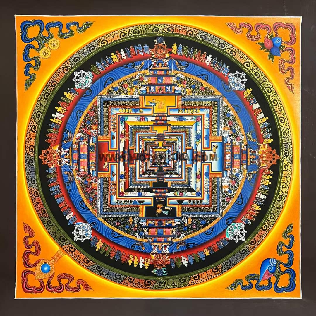 尼泊尔知名唐卡画师《时轮金刚坛城》唐卡手绘布本,采用24K真金描线,天然矿石颜料着色晕染,画工细腻,是一副难得一见的好唐卡作品。