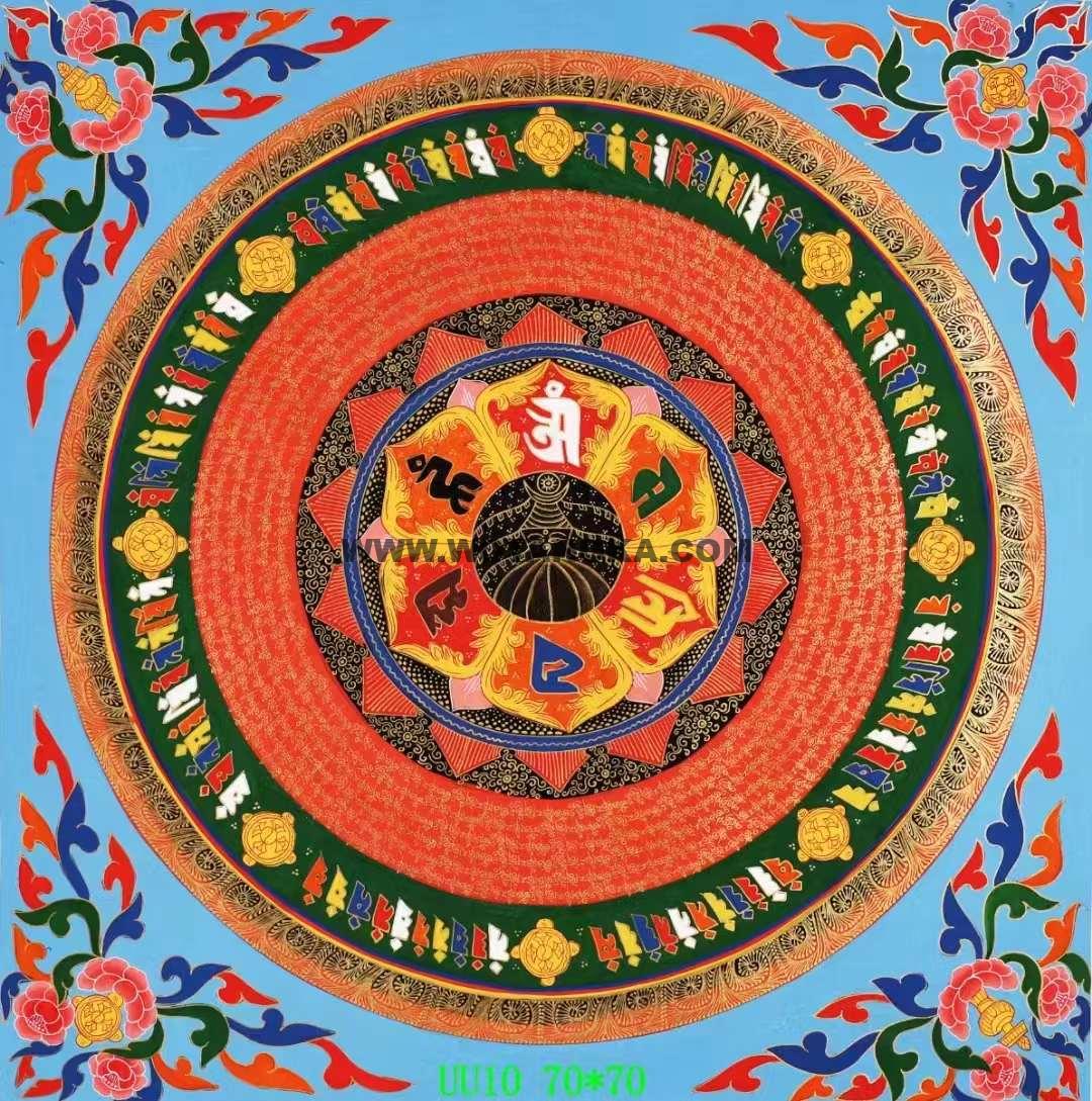 坛城象征宇宙本源,是圣坛的代表,挂与家里玄关之处,有镇宅辟邪的妖邪不入的作用,古代著名寺院皇宫都用此法门来镇宅辟邪,十分殊胜。喜欢不要错过。六字大明咒是观世音菩萨心咒,源于梵文中,此咒含有诸佛无尽的加持与慈悲,是诸佛慈悲和智慧的音声显现。能改变命运,修成幸福健康的人生。