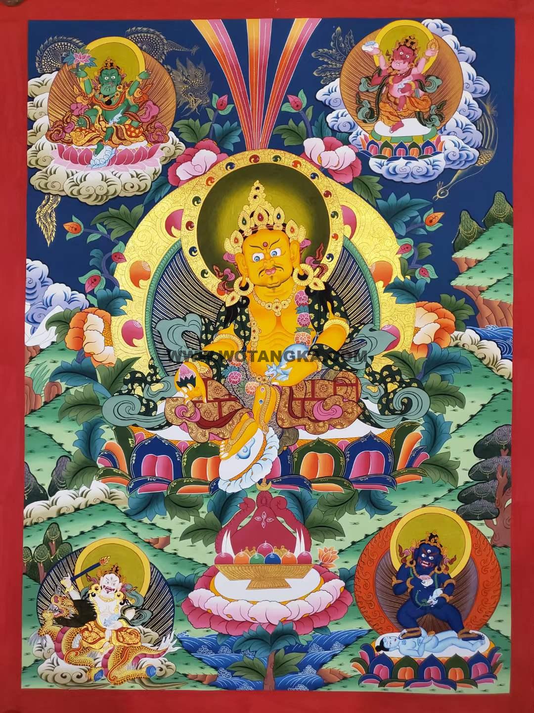 尼泊尔知名唐卡画师作品,纯手绘布本唐卡【五方财神】,作品采用24K真金金粉混合天然颜料纯手绘而成。作品主尊宝相传神。布图干净精美、画工非常的细腻,严格的遵照佛经的度量仪轨如法绘制,期待有缘人。