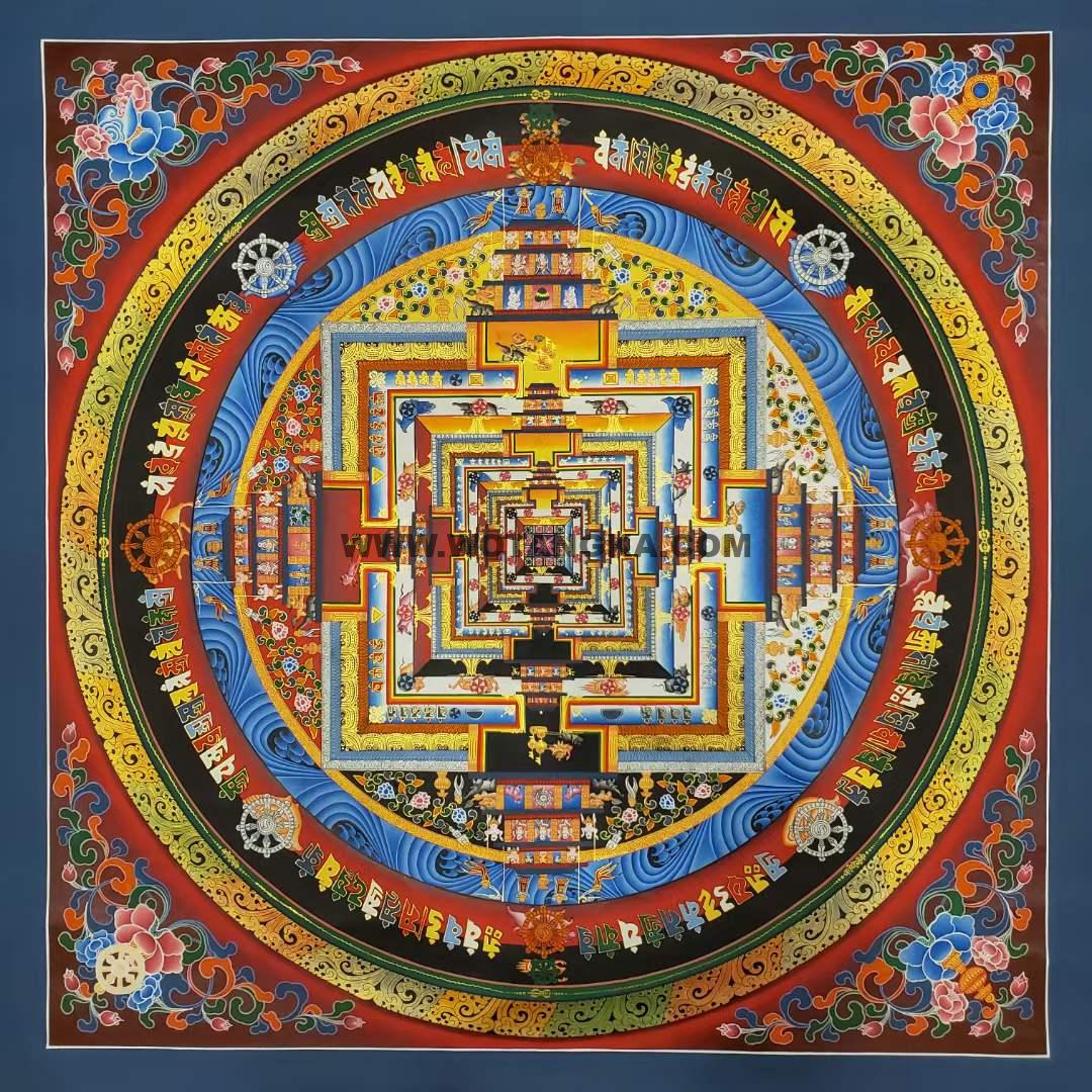 尼泊尔知名唐卡画师《时轮金刚坛城》唐卡手绘布本,采用24K真金描线,天然矿石颜料着色晕染,画工细腻,是一副难得一见的好唐卡作品。