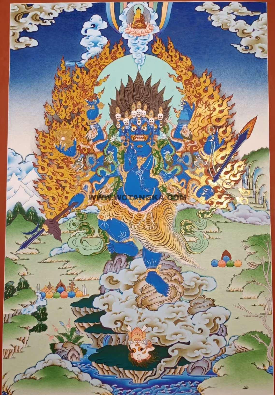 尼泊尔知名唐卡画师作品【秽迹金刚】,主尊宝相传神,作品采用金粉混合天然颜料纯手绘而成。作品主尊宝相传神。布图干净精美、画工非常的细腻,严格的遵照佛经的度量仪轨如法绘制,期待有缘人。