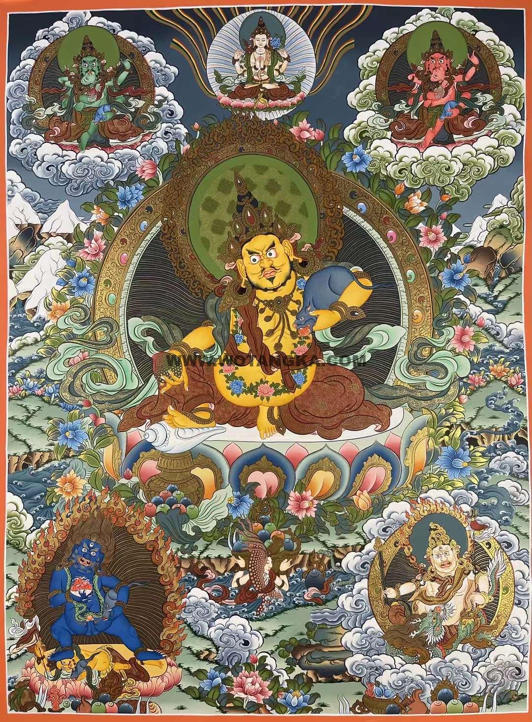 尼泊尔知名唐卡画师布塔作品,纯手绘布本唐卡【五方财神】,作品采用24K真金金粉混合天然颜料纯手绘而成。作品主尊宝相传神。布图干净精美、画工非常的细腻,严格的遵照佛经的度量仪轨如法绘制,期待有缘人。