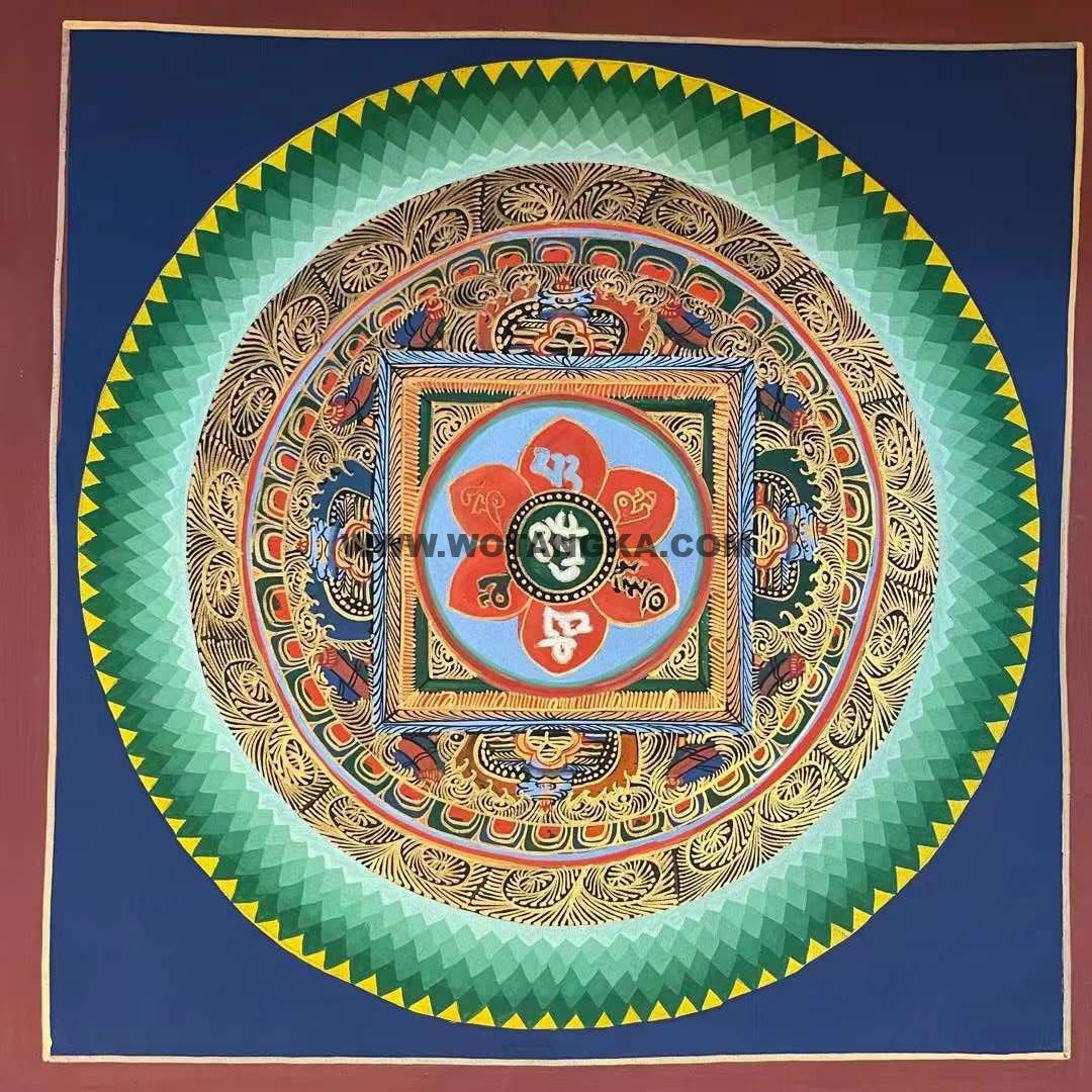 尼泊尔画僧力作精品唐卡坛城-六字真言坛城。《六字真言坛城》唐卡是高端会所公司豪宅,背景墙,镇宅首选。
