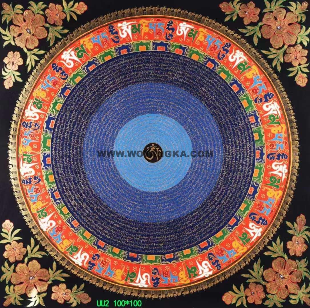 坛城象征宇宙本源,是圣坛的代表,挂与家里玄关之处,有镇宅辟邪的妖邪不入的作用,古代著名寺院皇宫都用此法门来镇宅辟邪,十分殊胜。喜欢不要错过。六字大明咒是观世音菩萨心咒,源于梵文中,此咒含有诸佛无尽的加持与慈悲,是诸佛慈悲和智慧的音声显现。能改变命运,修成幸福健康的人生。