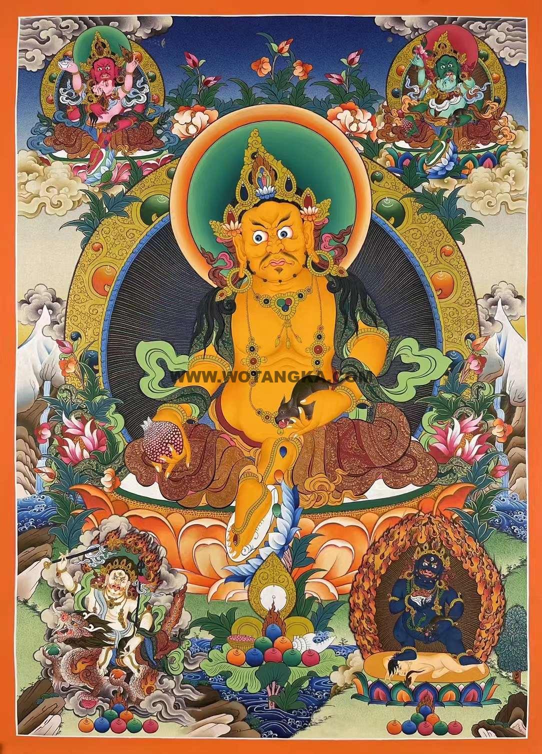 尼泊尔知名唐卡画师作品,纯手绘布本唐卡【五方财神】,作品采用24K真金金粉混合天然颜料纯手绘而成。作品主尊宝相传神。布图干净精美、画工非常的细腻,严格的遵照佛经的度量仪轨如法绘制,期待有缘人。